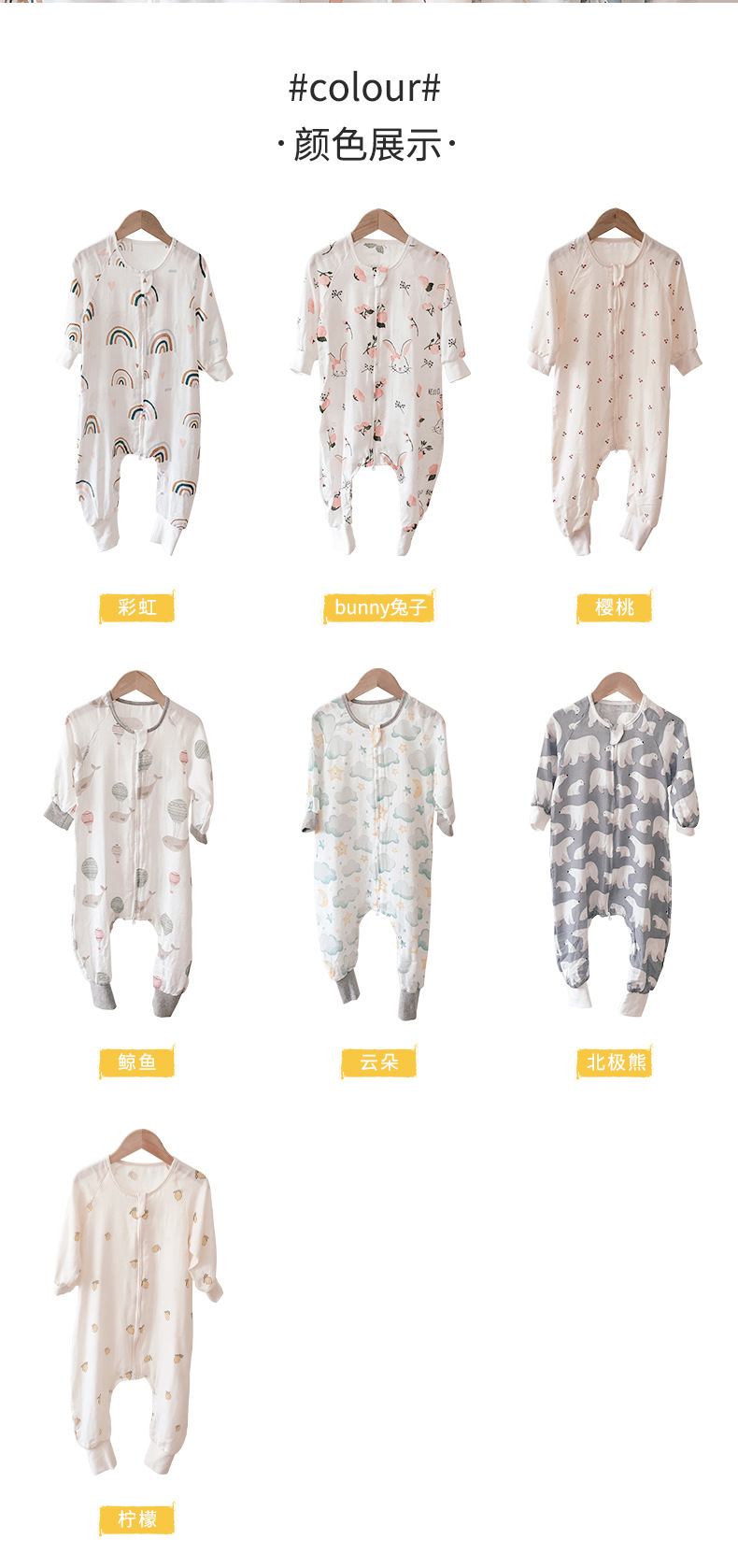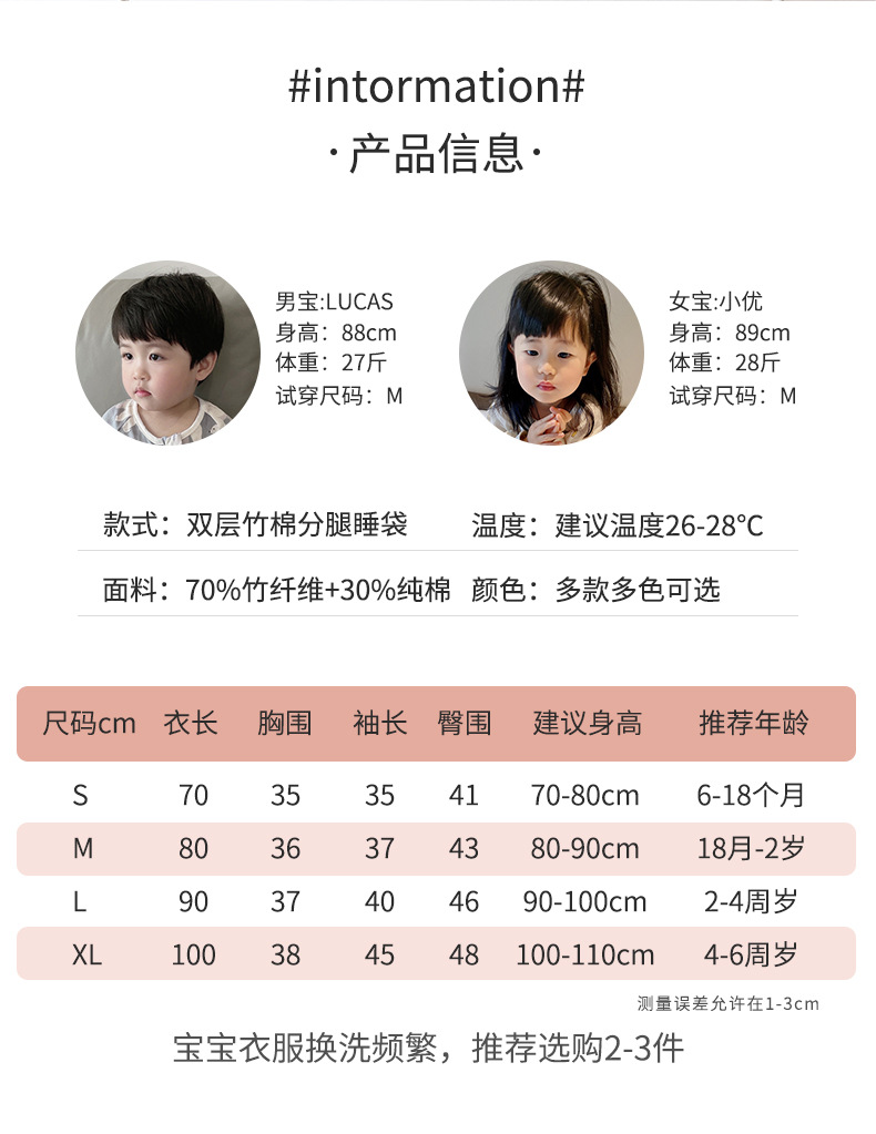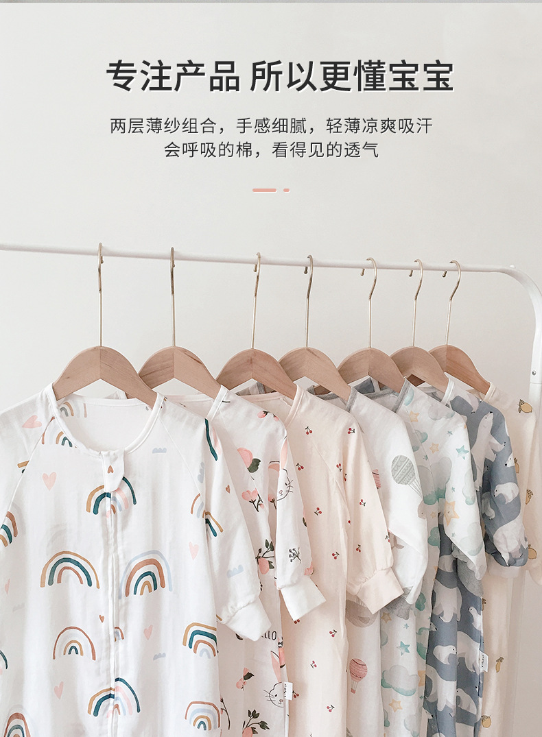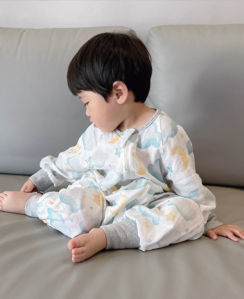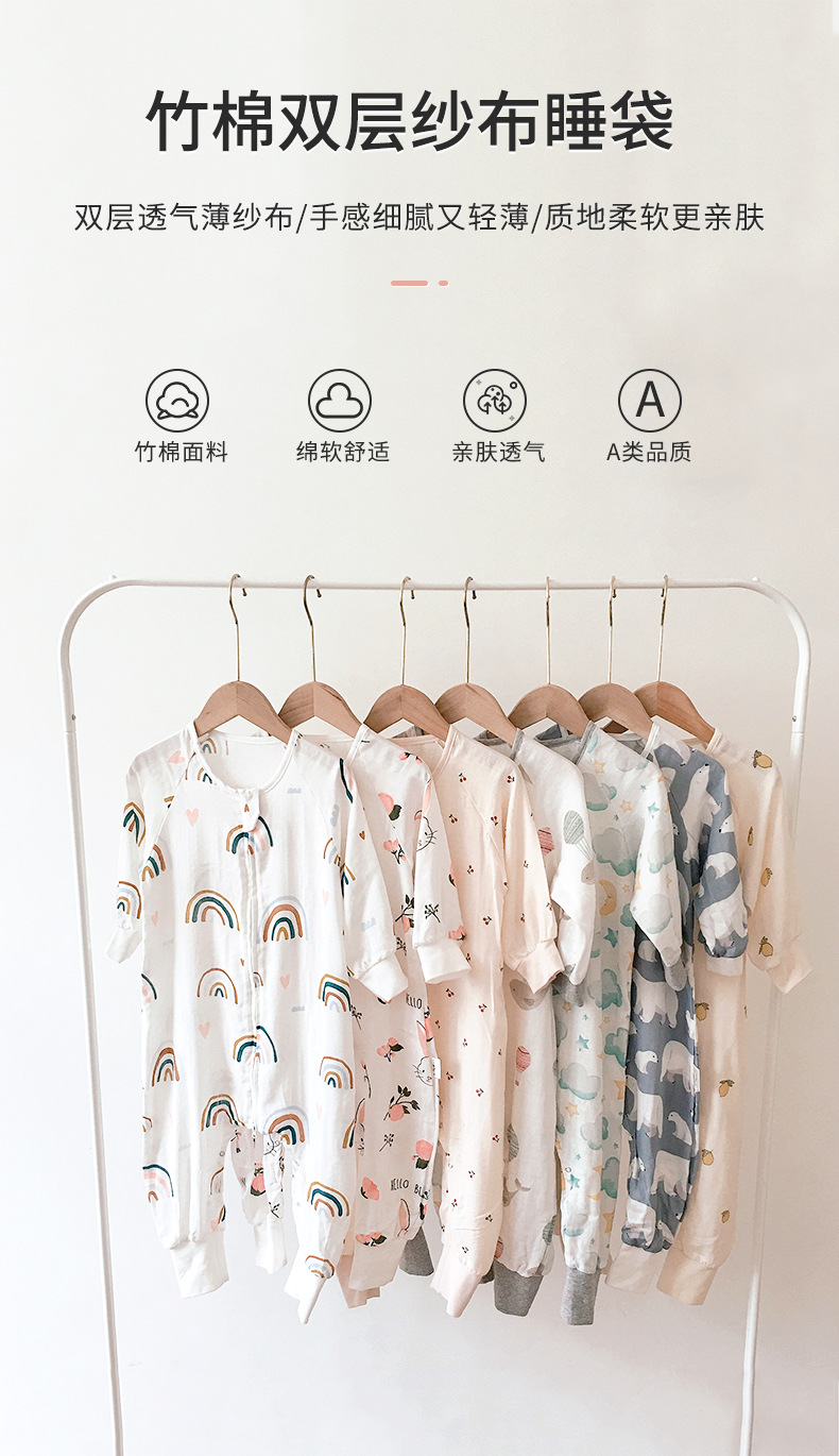 여름용 이중층 대나무면 분리형 다리가 있는 침낭, 영유아용 일체형 옷, 어린이용 발차기 방지 이불, 통기성, 가볍고 시원함스토어 가기