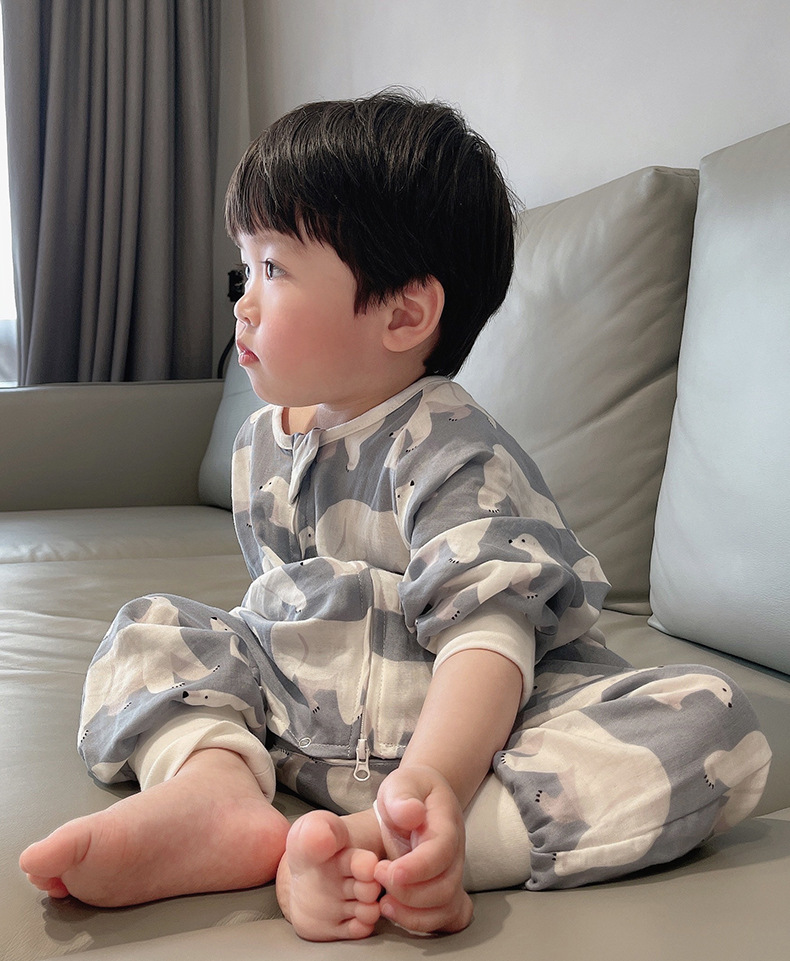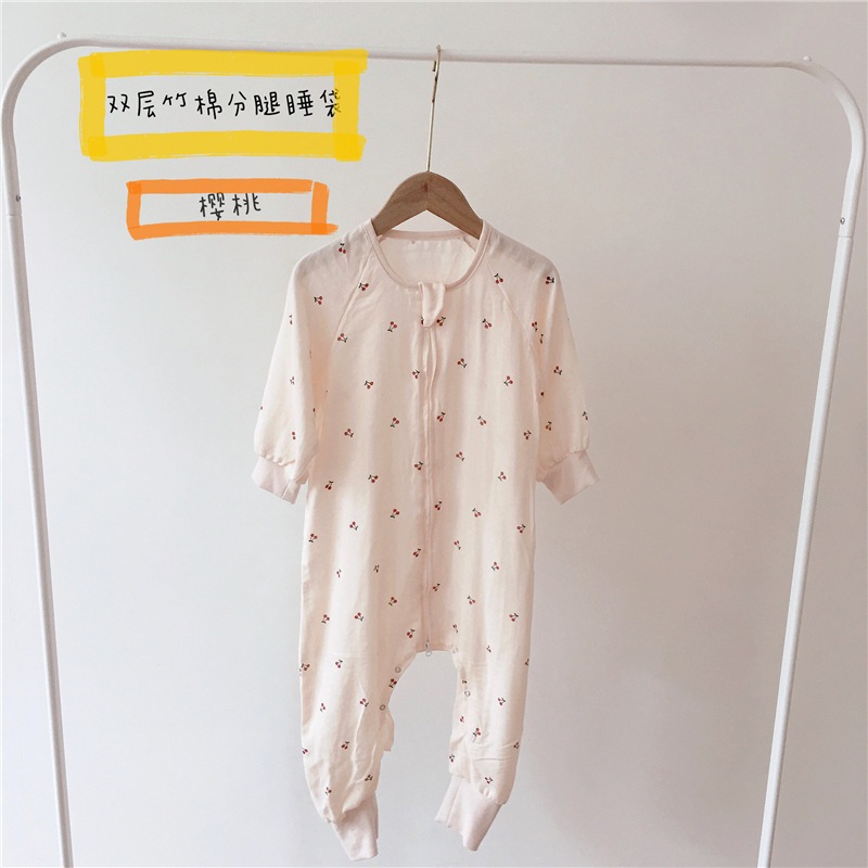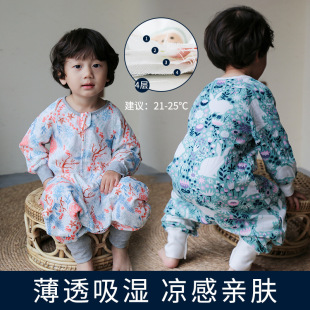 여름용 이중층 대나무면 분리형 다리가 있는 침낭, 영유아용 일체형 옷, 어린이용 발차기 방지 이불, 통기성, 가볍고 시원함
