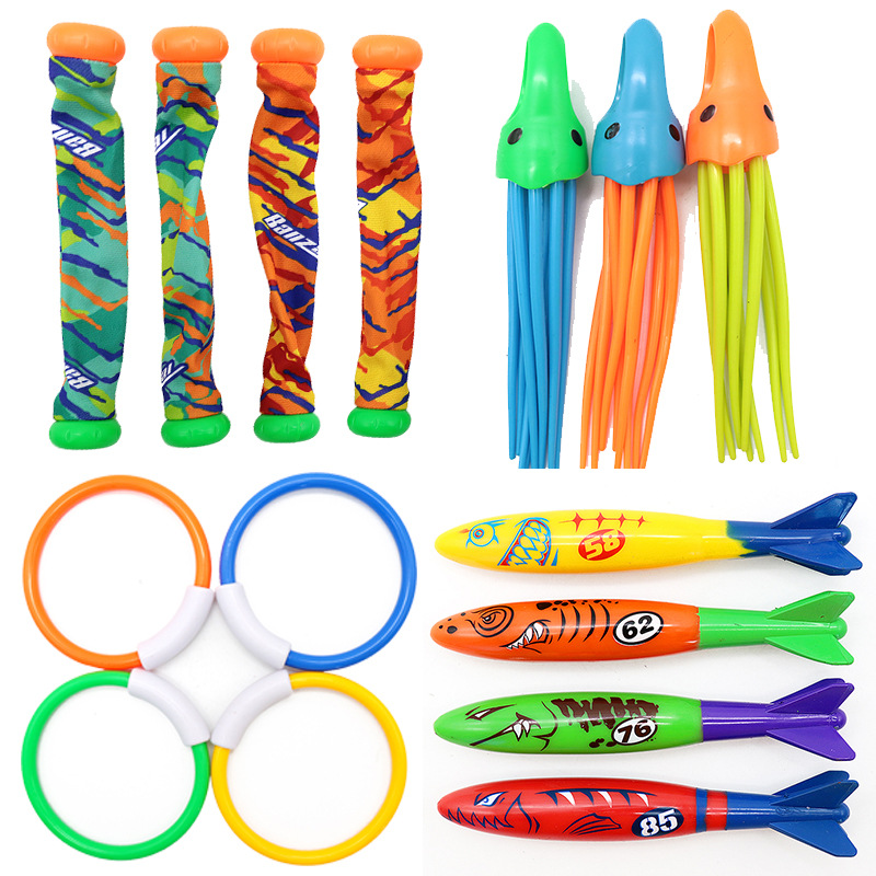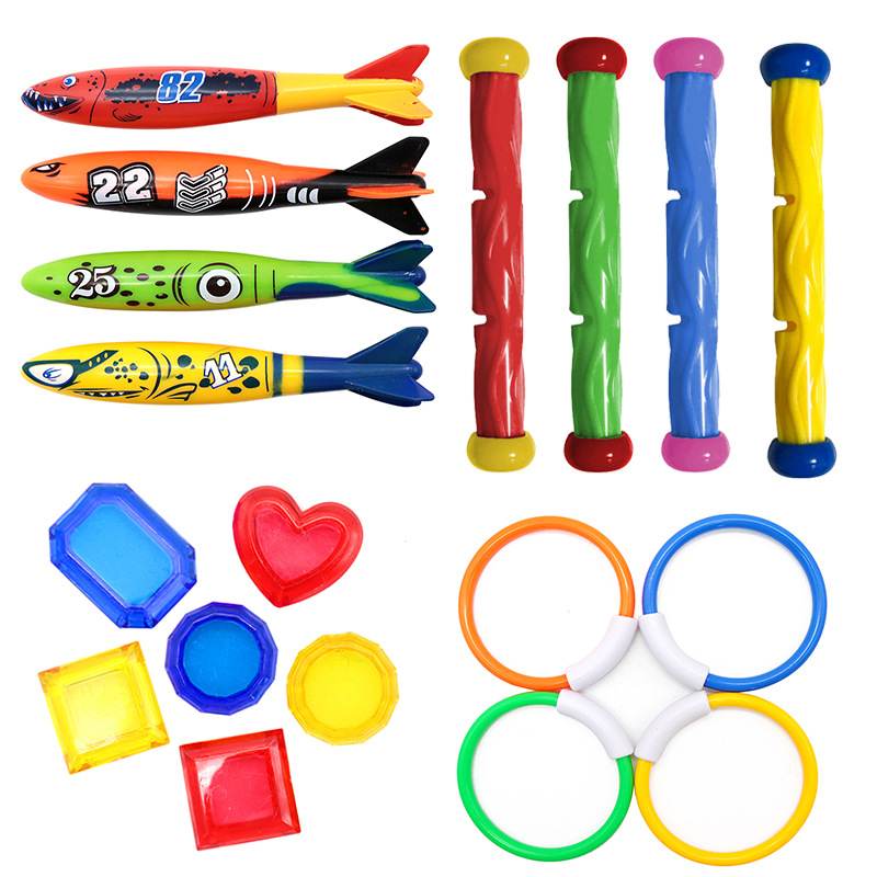 크로스 국경 아마존 다이빙 장난감 어린이 수영장 보물 사냥 다이빙 어뢰 워터 링 다이아몬드 물 세트 장난감