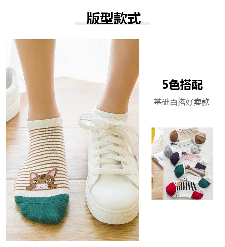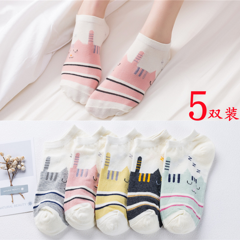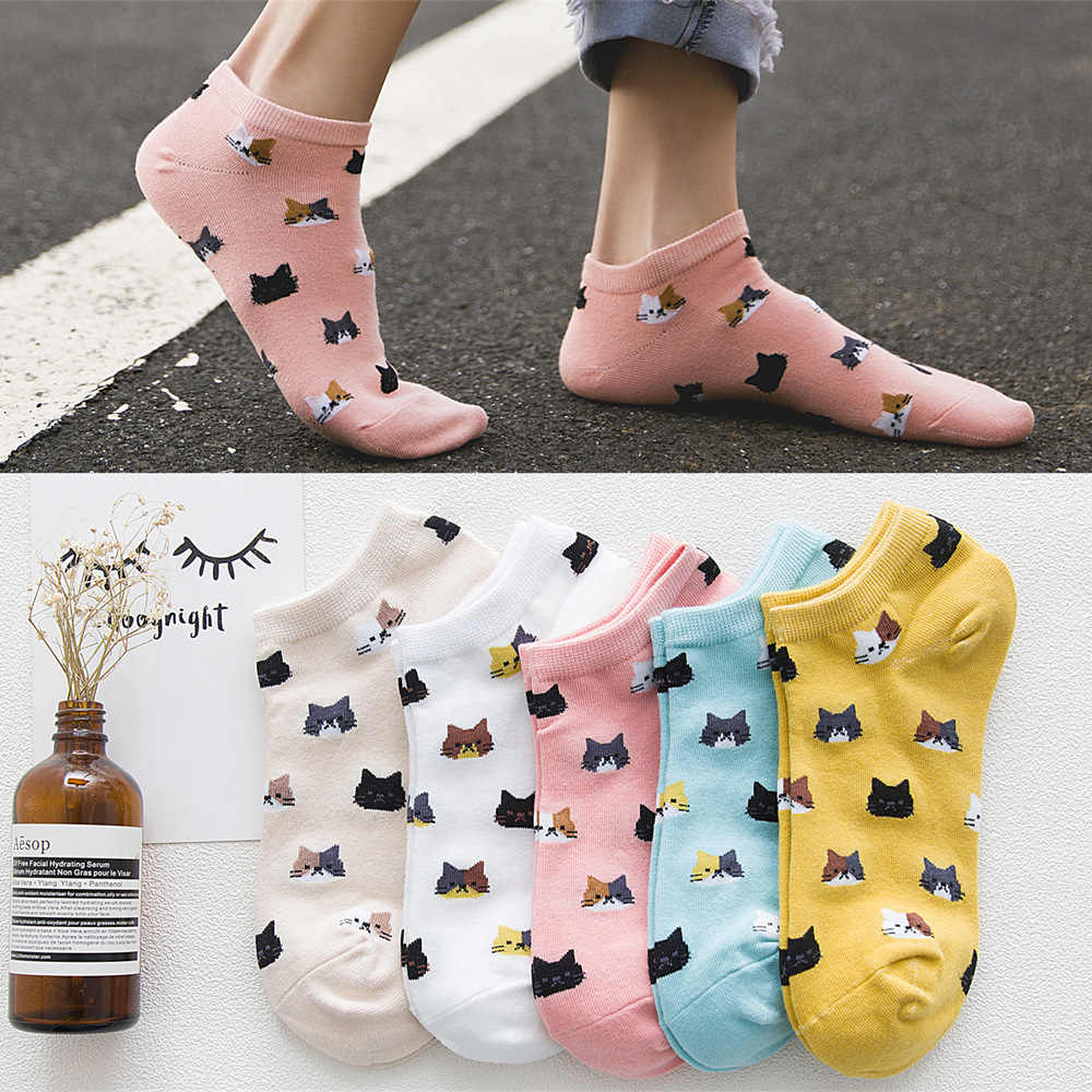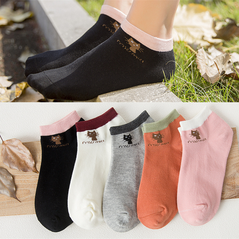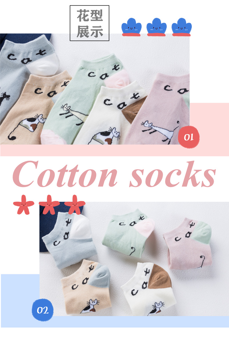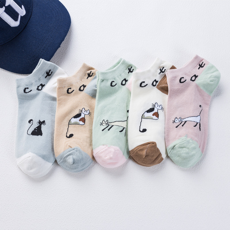 순면 여성 양말 귀여운 봄 여름 만화 고양이 보트 양말 컬러풀한 한국 스타일 순면 양말 도매 공장 직배송스토어 가기