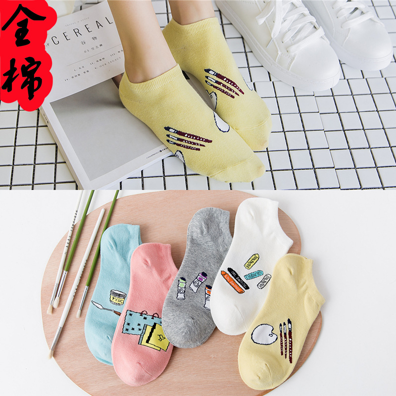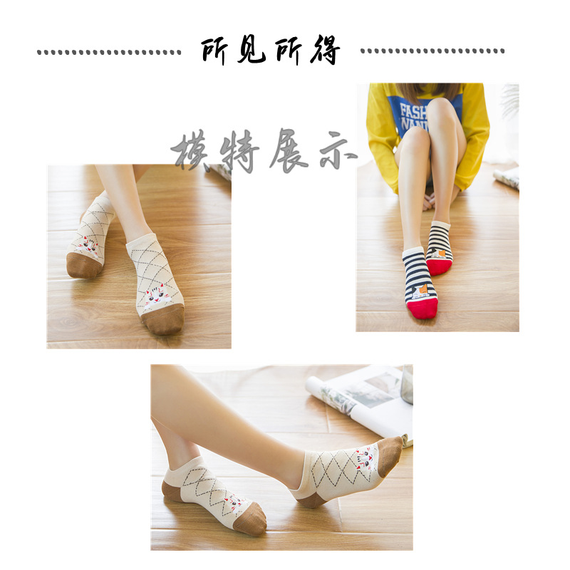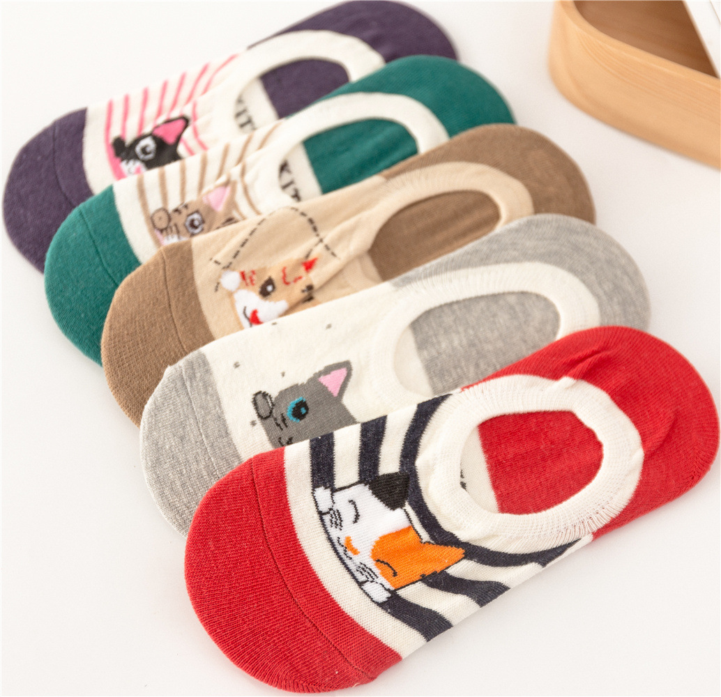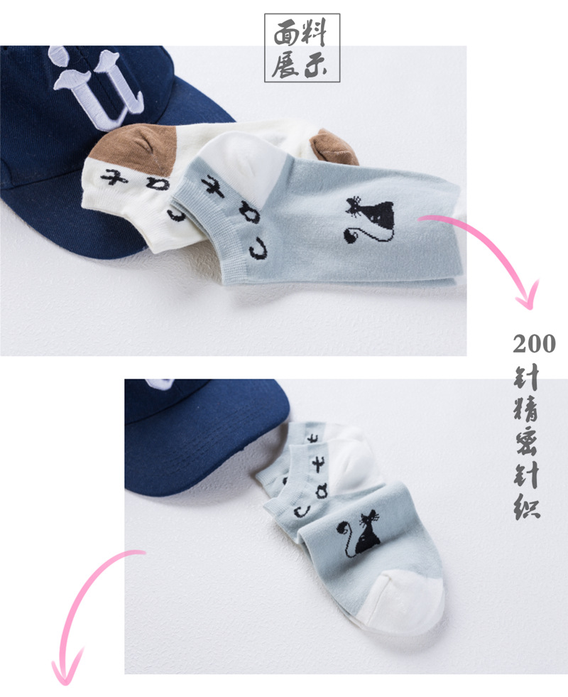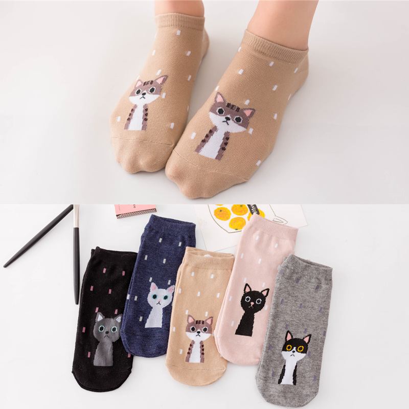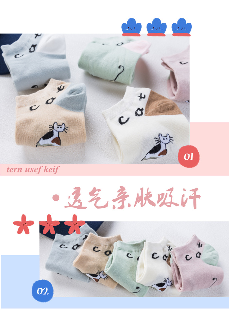 순면 여성 양말 귀여운 봄 여름 만화 고양이 보트 양말 컬러풀한 한국 스타일 순면 양말 도매 공장 직배송스토어 가기