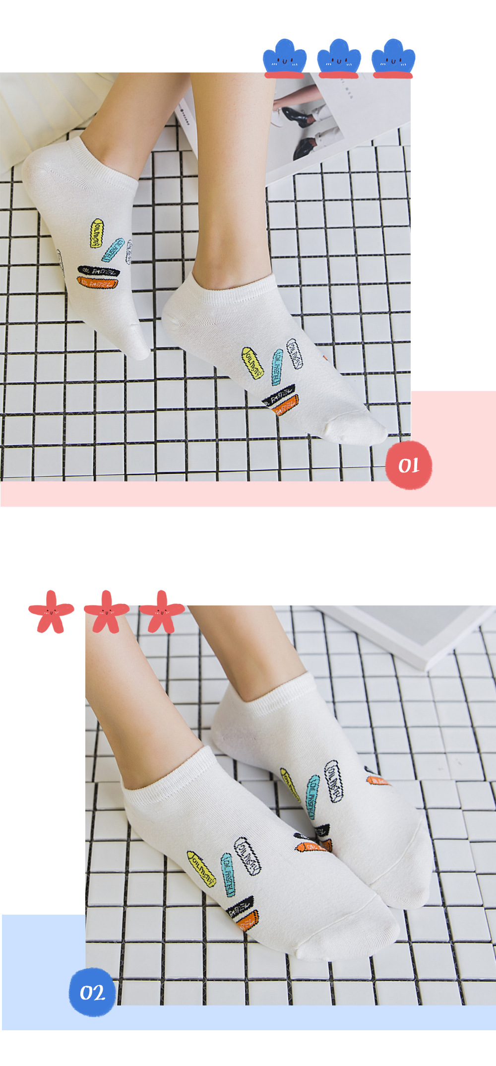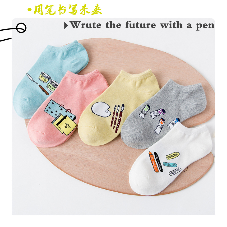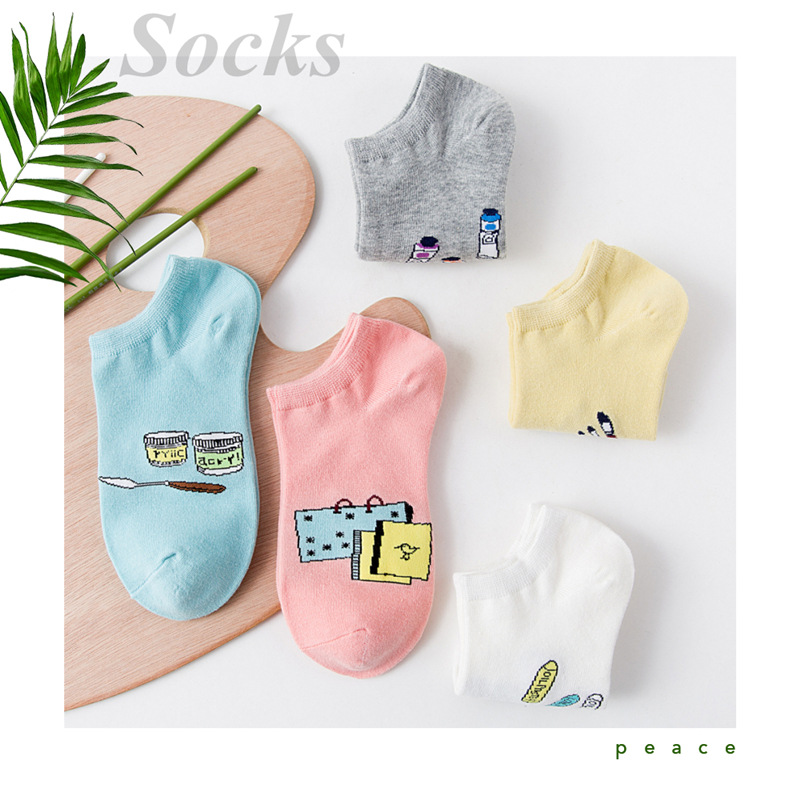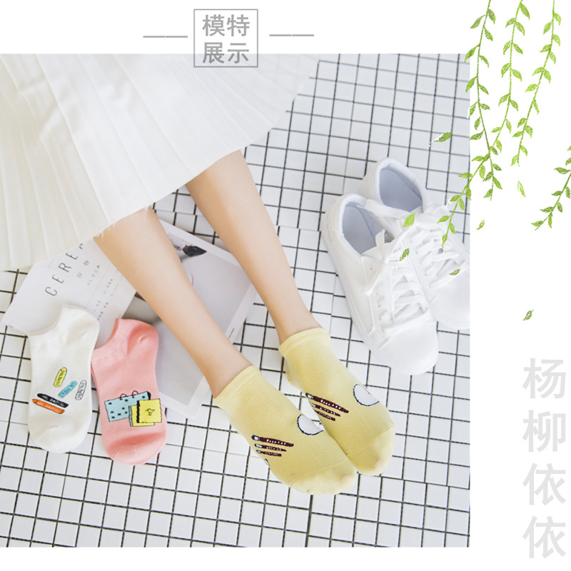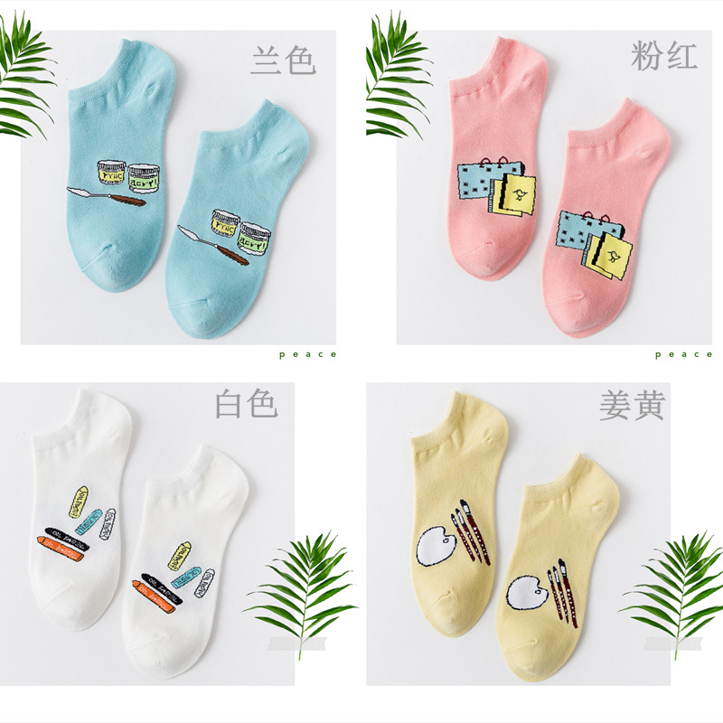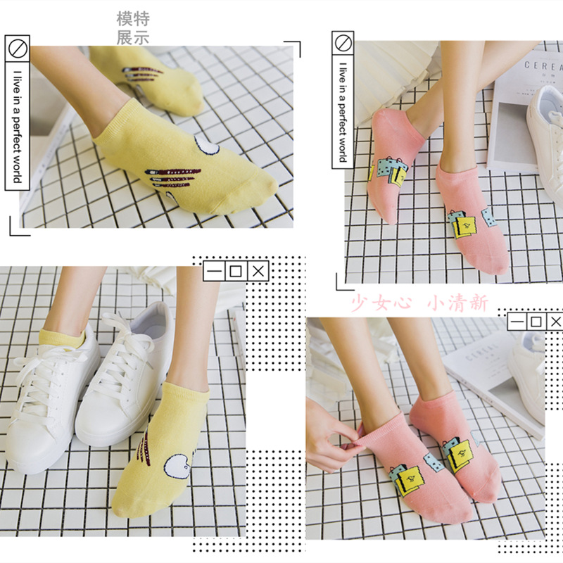 순면 여성 양말 귀여운 봄 여름 만화 고양이 보트 양말 컬러풀한 한국 스타일 순면 양말 도매 공장 직배송스토어 가기