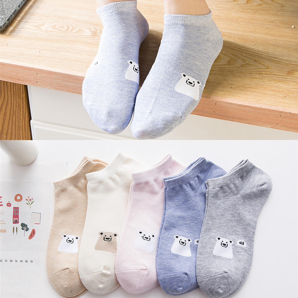 순면 여성 양말 귀여운 봄 여름 만화 고양이 보트 양말 컬러풀한 한국 스타일 순면 양말 도매 공장 직배송