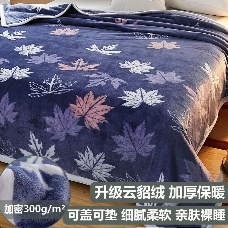 • 블루 그레이 메이플 리프 [클라우드 밍크 양털 침대 담요 업그레이드]