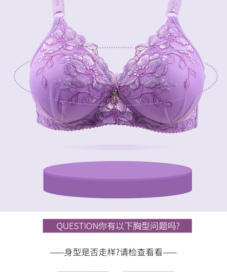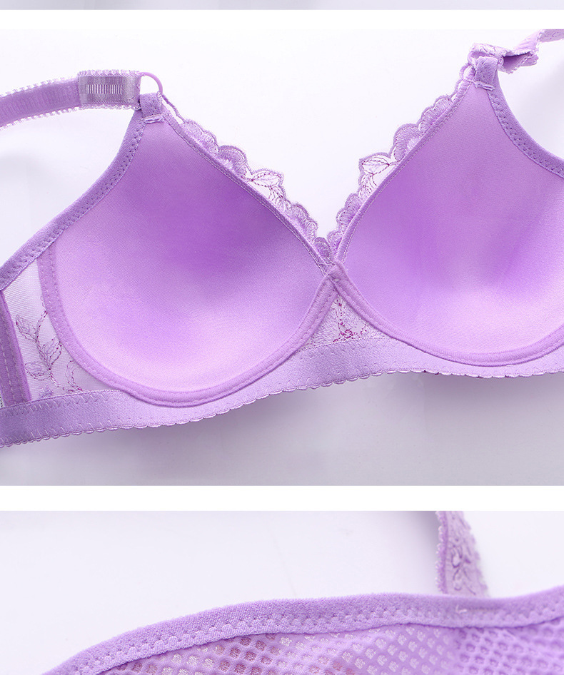 작은 가슴을 위한 푸쉬업 브라, 여성 속옷, 자수 장식, 옆가슴 보정, 얇은 무선 브라, 통기성 좋고 가벼움