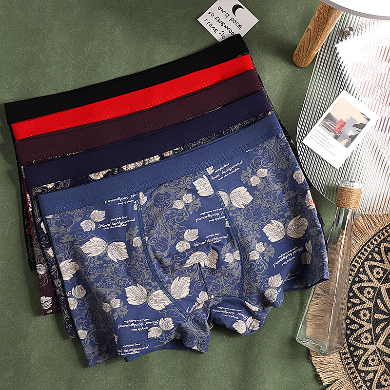 45.00 kg-90.00 kg 남성용 통기성 복서 브리프 퓨어 코튼 미드 웨이스트 플러스 사이즈 복서 반바지 인쇄 트렌디 한 여름