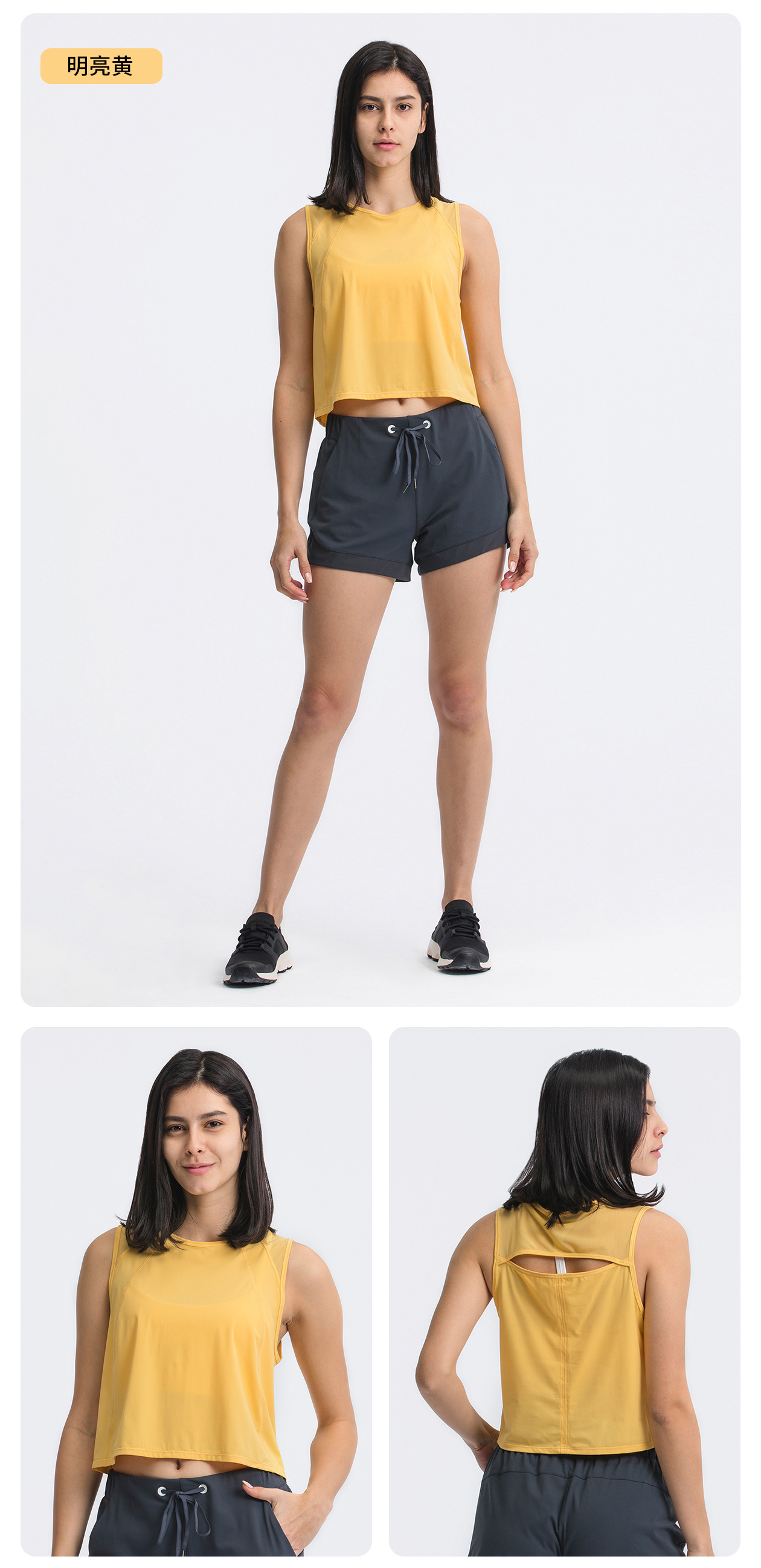 봄과 여름 새로운 느슨한 스포츠 블라우스 여성용 단색 요가 의류 가슴 패드 피트니스 민소매 조끼