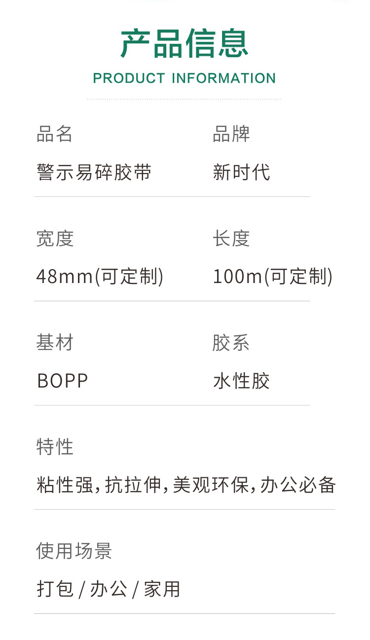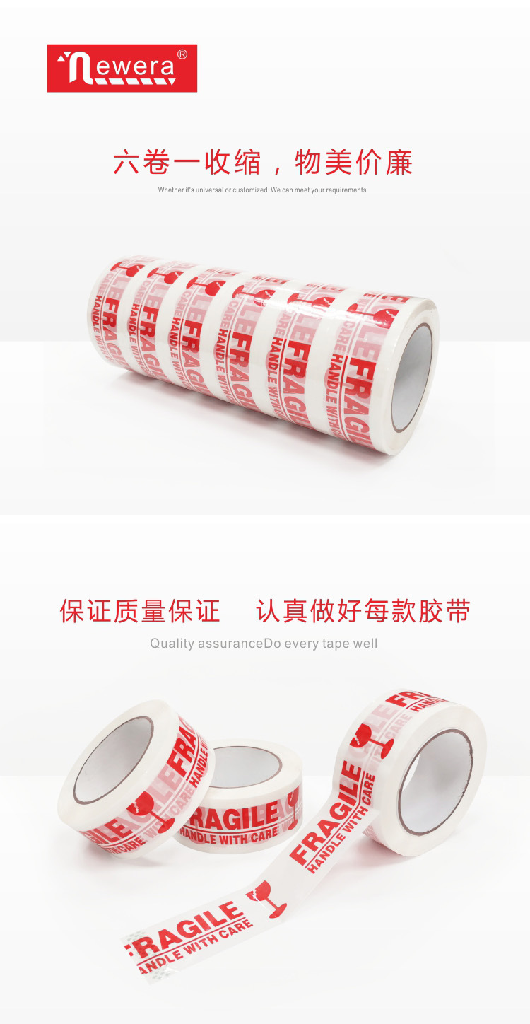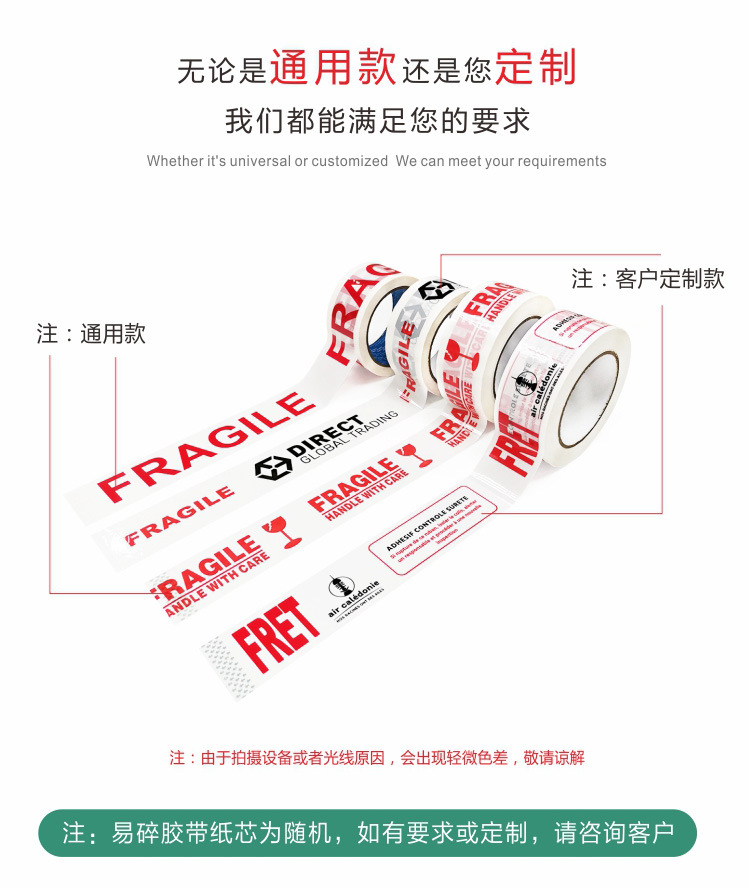 대용량 도매 경고 깨지기 쉬운 영어 인쇄 테이프 포장 포장 포장 밀봉 테이프 밀봉 테이프 밀봉 경고 종이 테이프