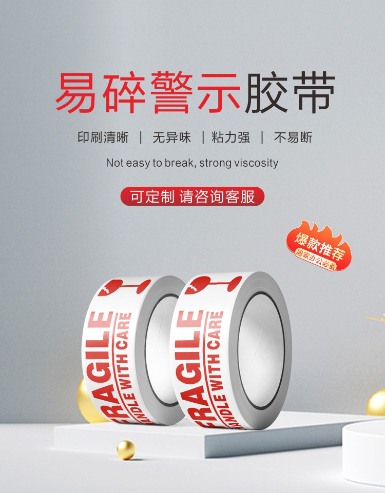 대용량 도매 경고 깨지기 쉬운 영어 인쇄 테이프 포장 포장 포장 밀봉 테이프 밀봉 테이프 밀봉 경고 종이 테이프스토어 가기
