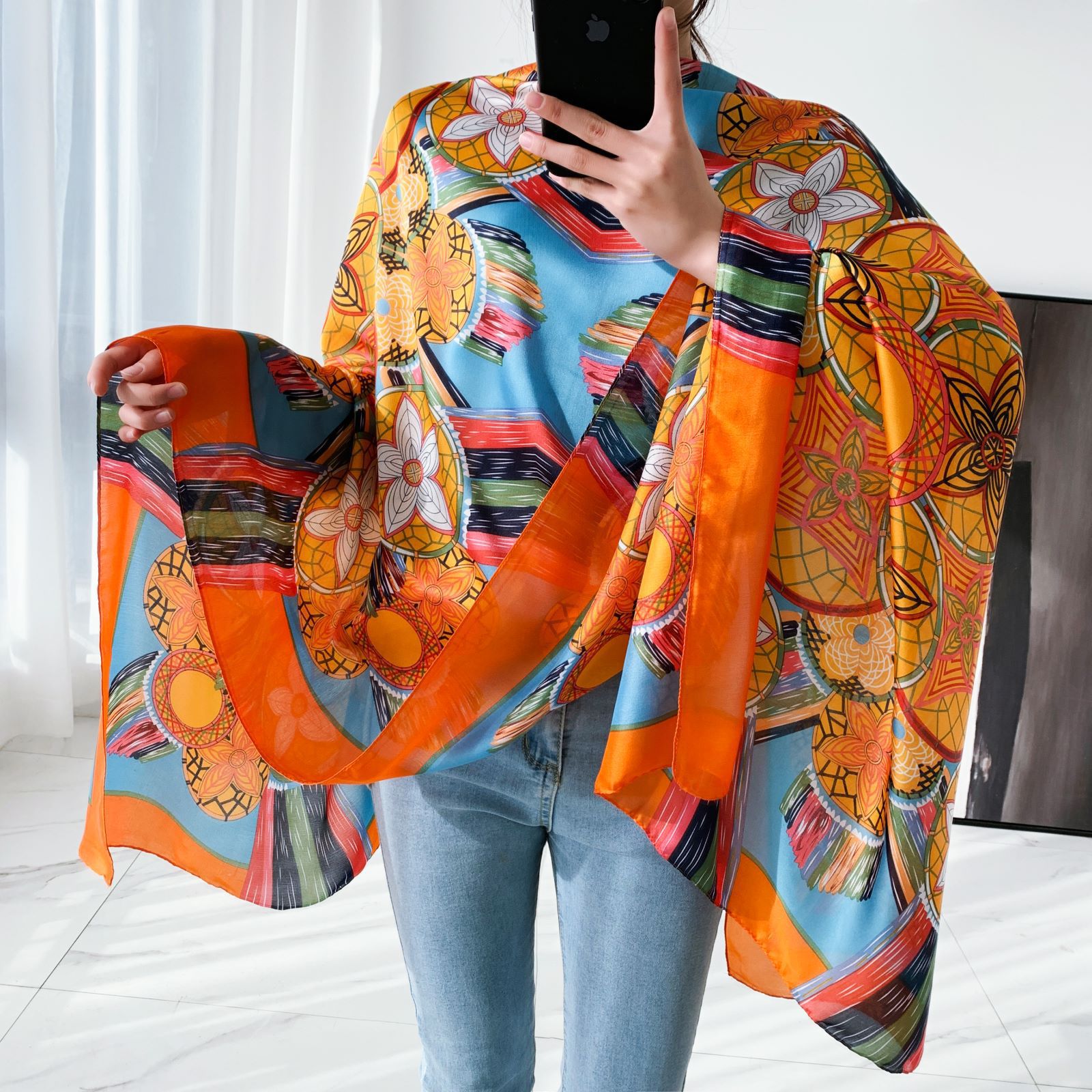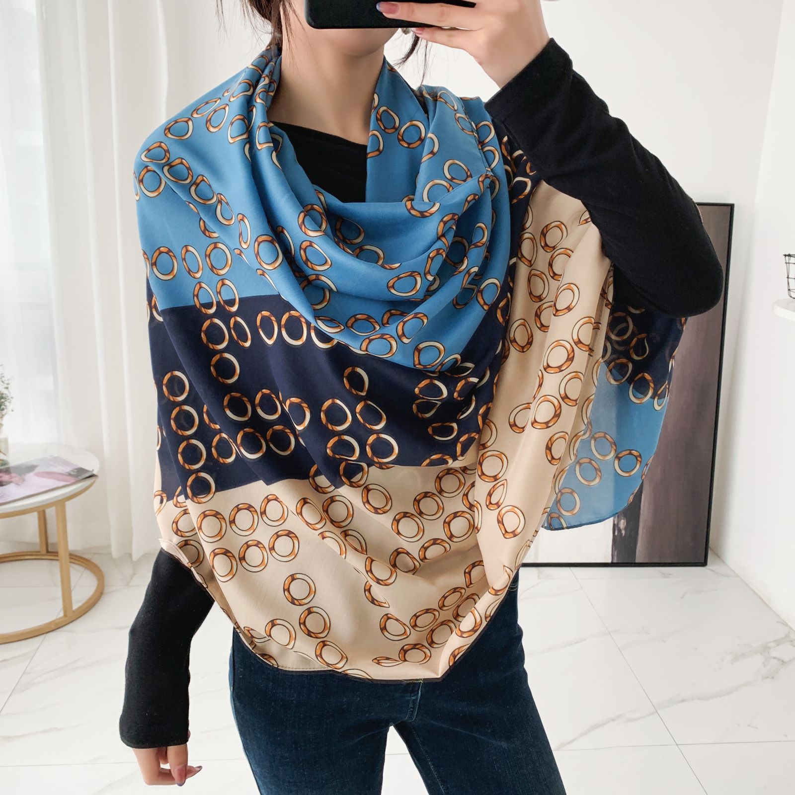 항저우 실크 고급 실크 스카프 여성 패션 새로운 모든 매치 웨스턴 스타일 스카프 봄과 가을 긴 스카프스토어 가기