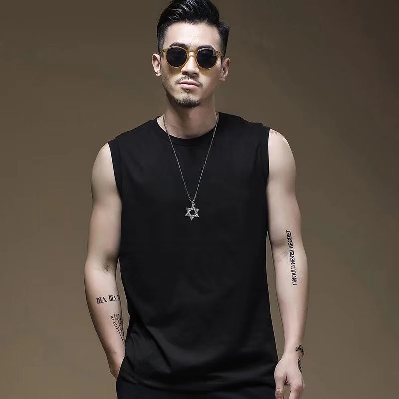 여름 솔리드 컬러 라운드 넥 조끼 남성용 느슨한 양복 조끼 스포츠 피트니스 언더 셔츠 캐주얼 다목적 민소매 바닥 티셔츠스토어 가기