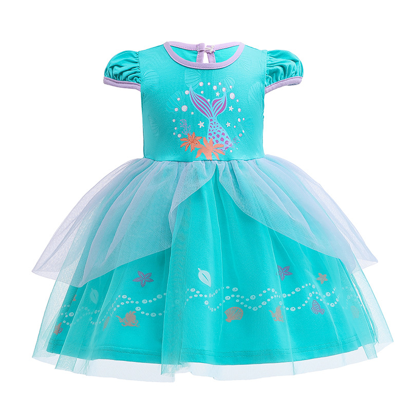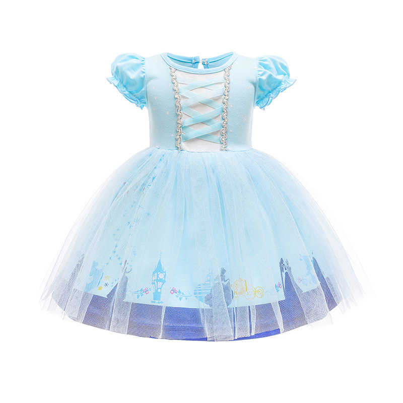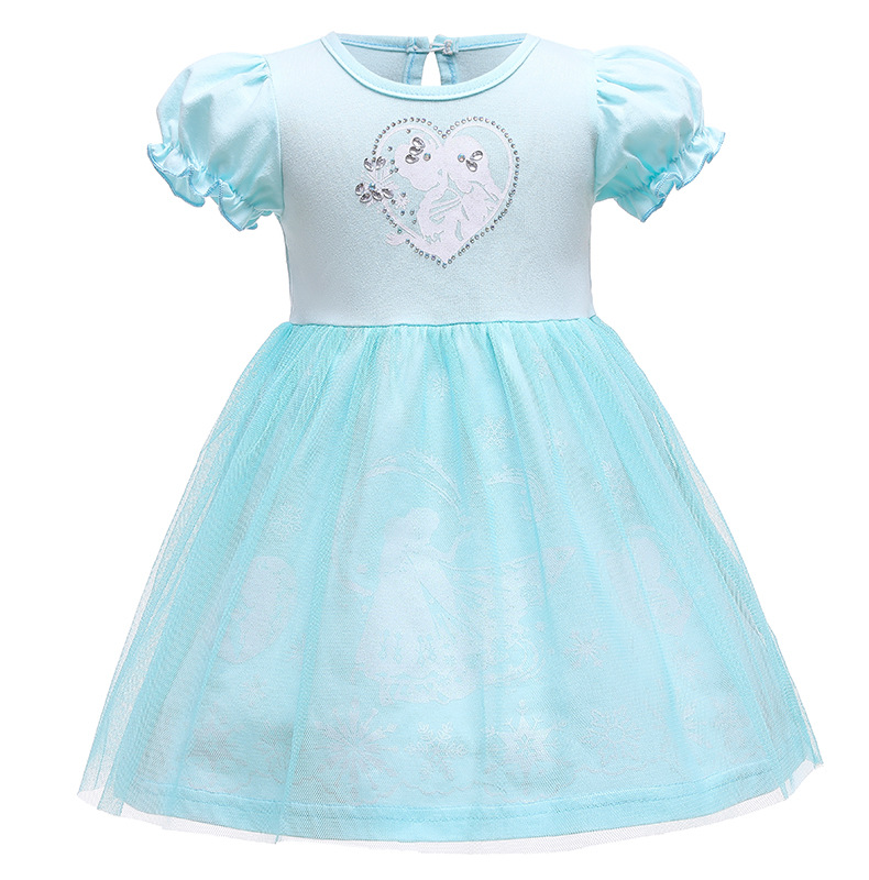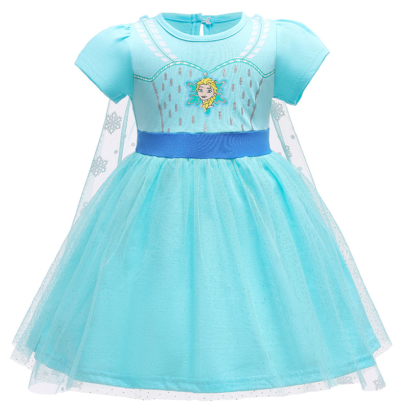 대외 무역 아동복 소녀 아기 원피스 메쉬 퍼프 소매 냉동 공주 아이샤 원피스 할로윈 원피스스토어 가기