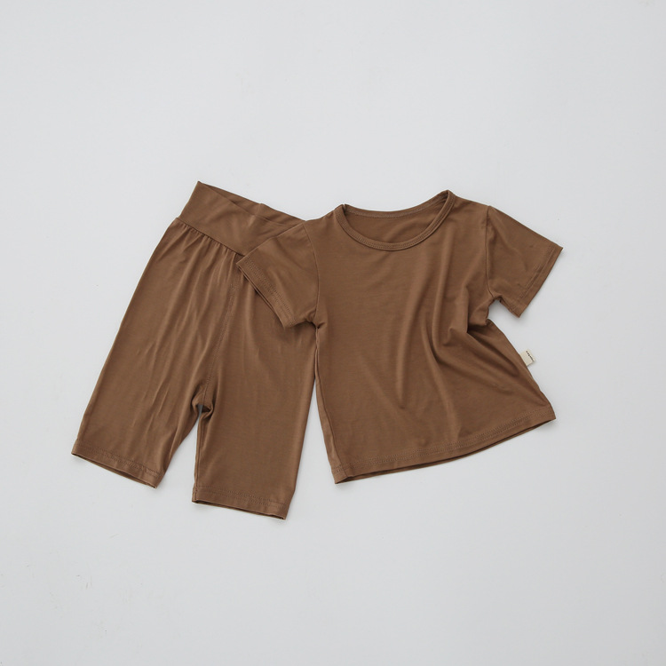 모달 잠옷 여름 얇은 반팔 아기 얼음 실크 가정 옷 세트 남자와 여자를위한 에어컨 옷