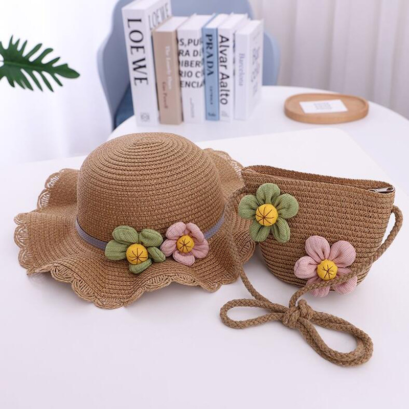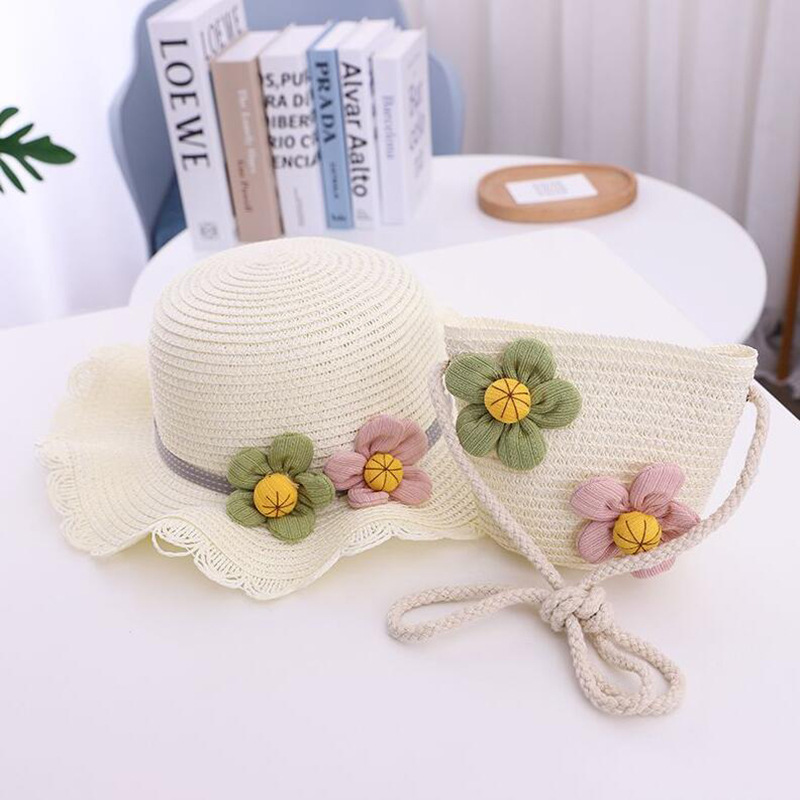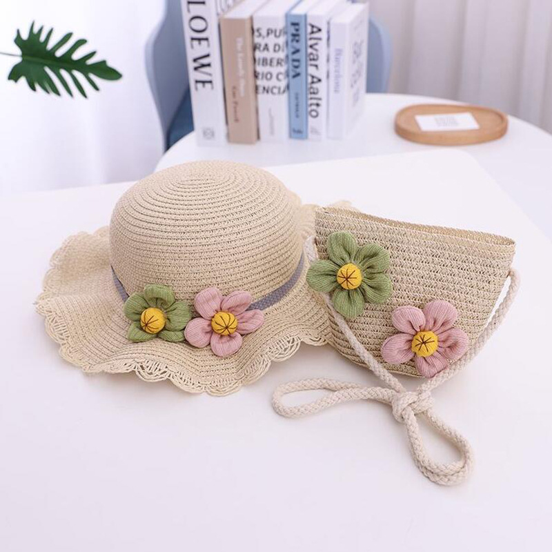 아기의 양산 어부 모자 여름 해변 통기성 어린이 패브릭 꽃 밀짚 모자 가방 소녀의 해변 자외선 차단제 모자