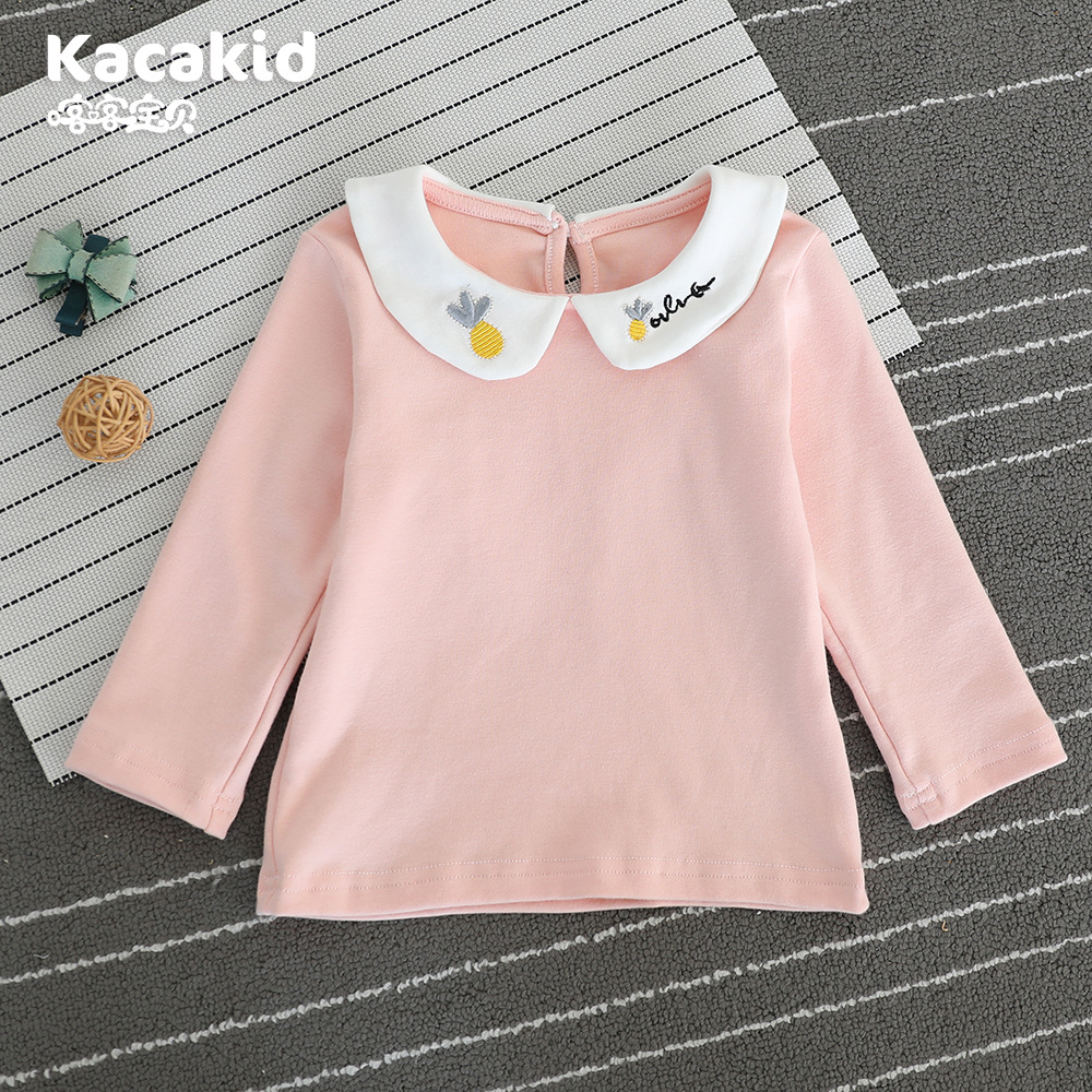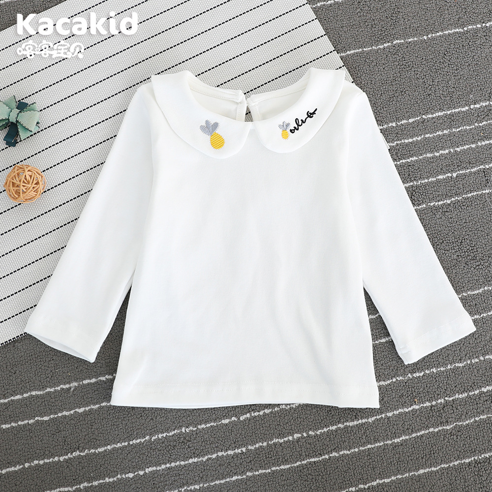카카 키드 달콤한 아동복 2025 봄과 가을 소녀 인형 칼라 티셔츠 파인애플 작은 옷깃 면 긴 소매 탑스토어 가기
