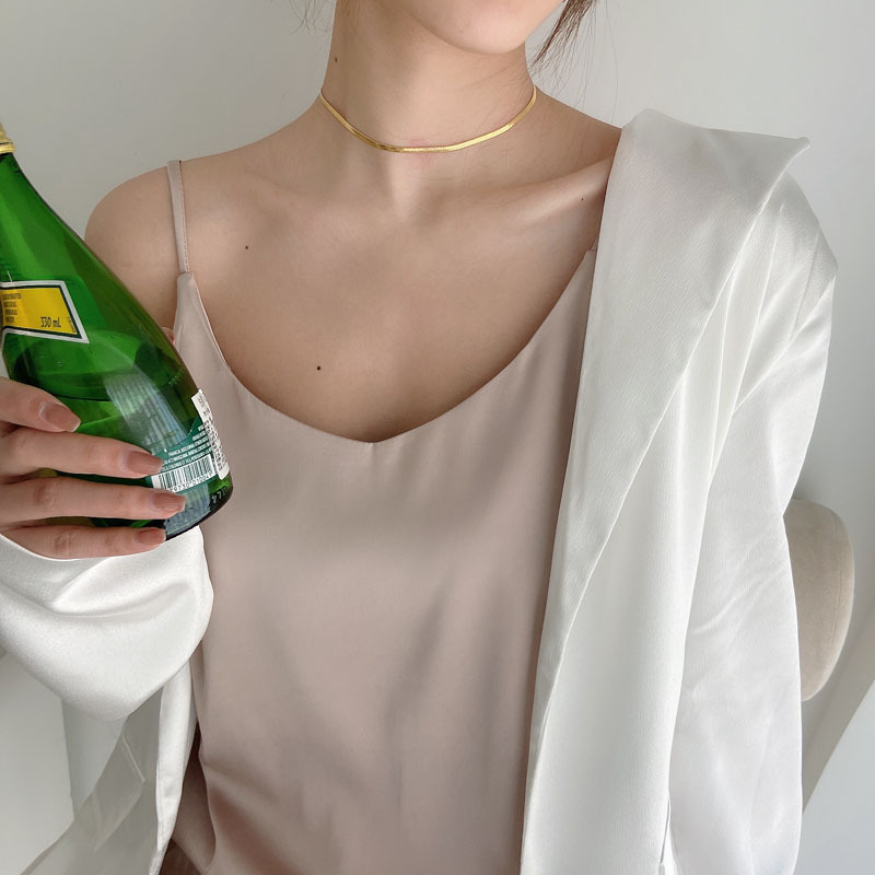 새틴 V 넥 느슨한 슬리밍 내부 레이어링 셔츠 도매 봄과 여름 여성을위한 새틴 모조 실크 캐미솔스토어 가기