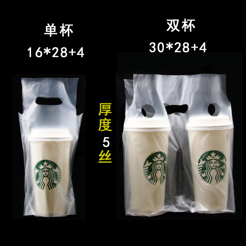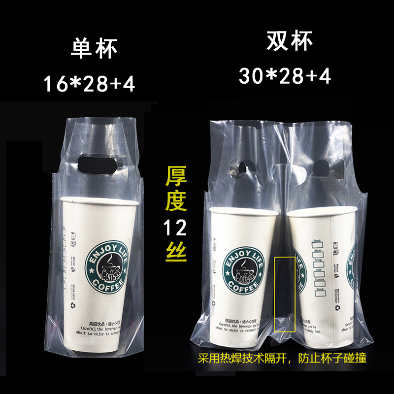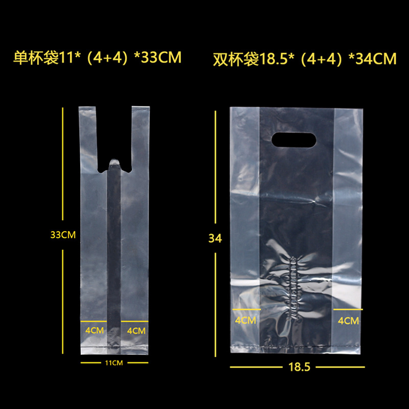 밀크티 봉투 포장 봉투 테이크아웃 봉투 음료 봉투 일회용 손잡이 비닐봉투 인쇄 가능 단일/이중 컵 투명 봉투스토어 가기
