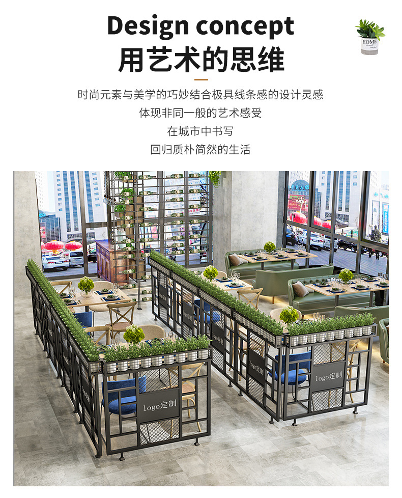 철 레스토랑 파티션 선반 레스토랑 바 울타리 통로 장식 울타리 꽃 선반 절반 화면 파티션 벽
