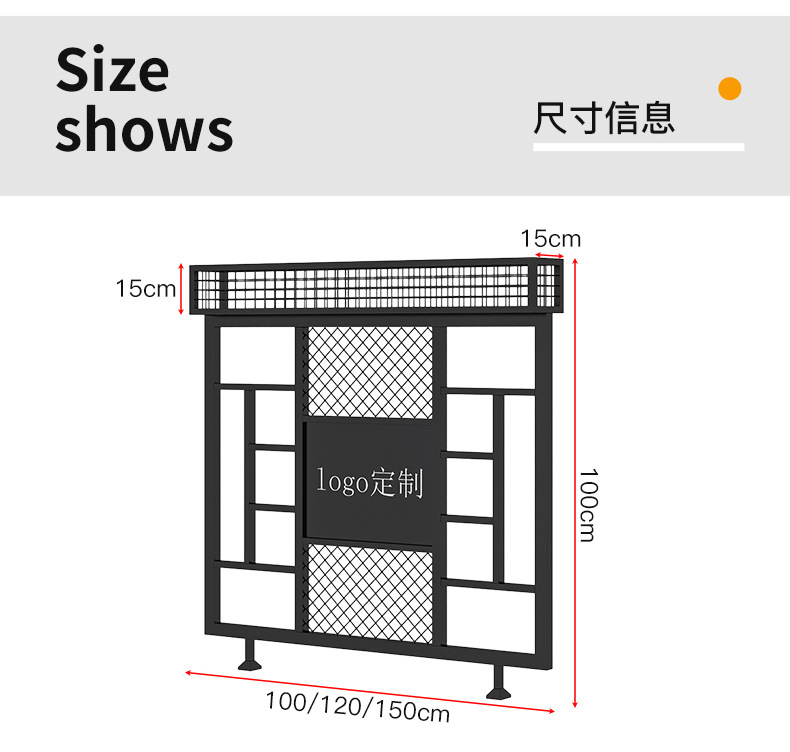 • 길이 150 * 너비 4 * 높이 100cm (검은 선반 +