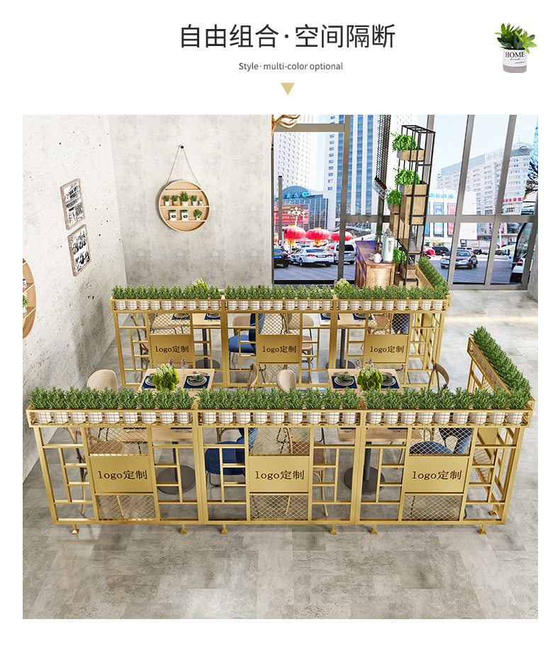 철 레스토랑 파티션 선반 레스토랑 바 울타리 통로 장식 울타리 꽃 선반 절반 화면 파티션 벽스토어 가기