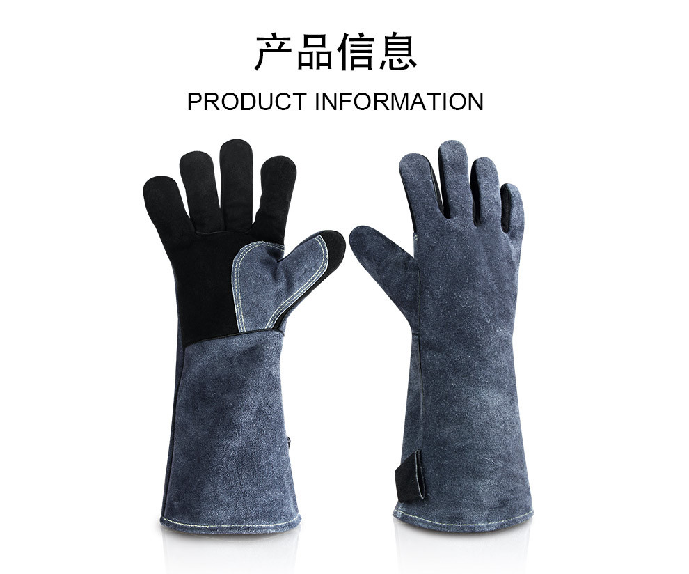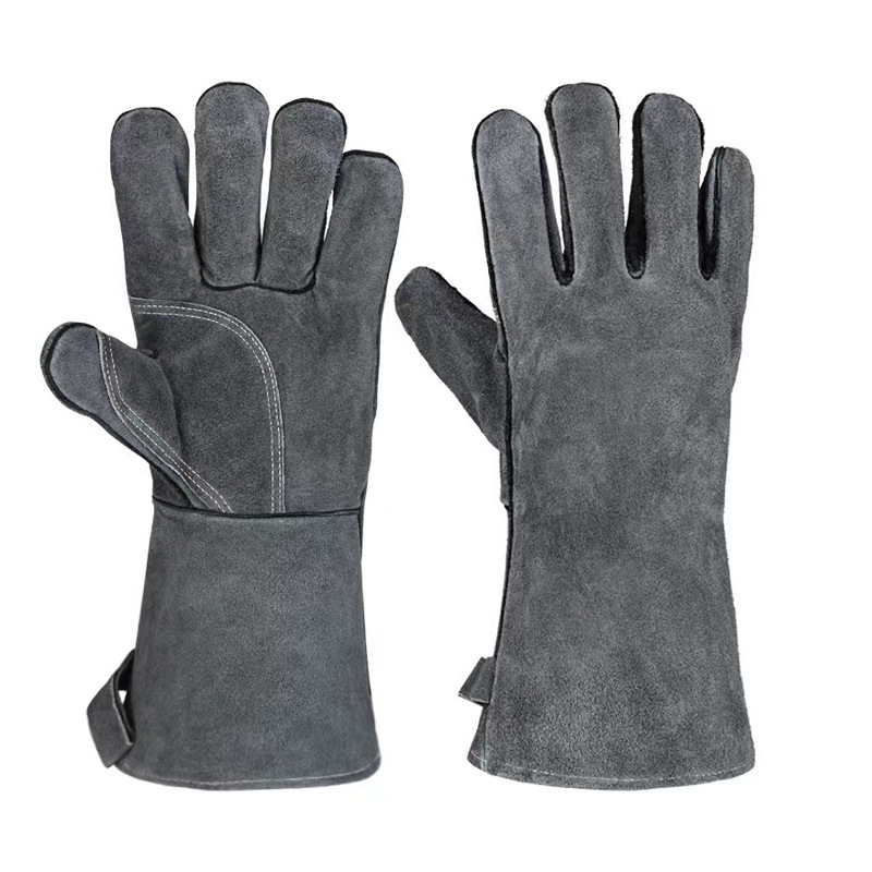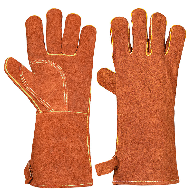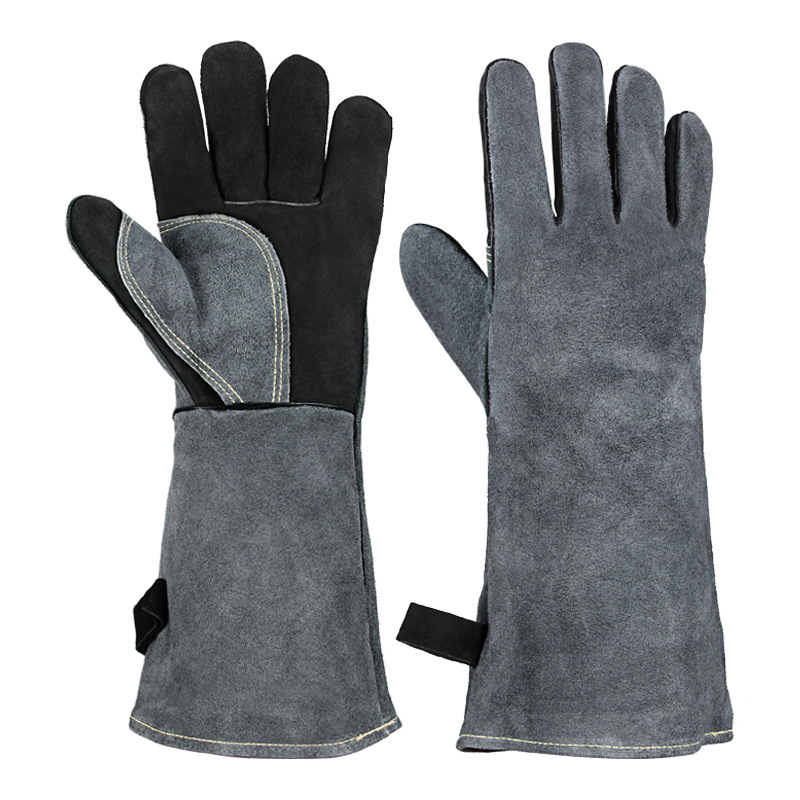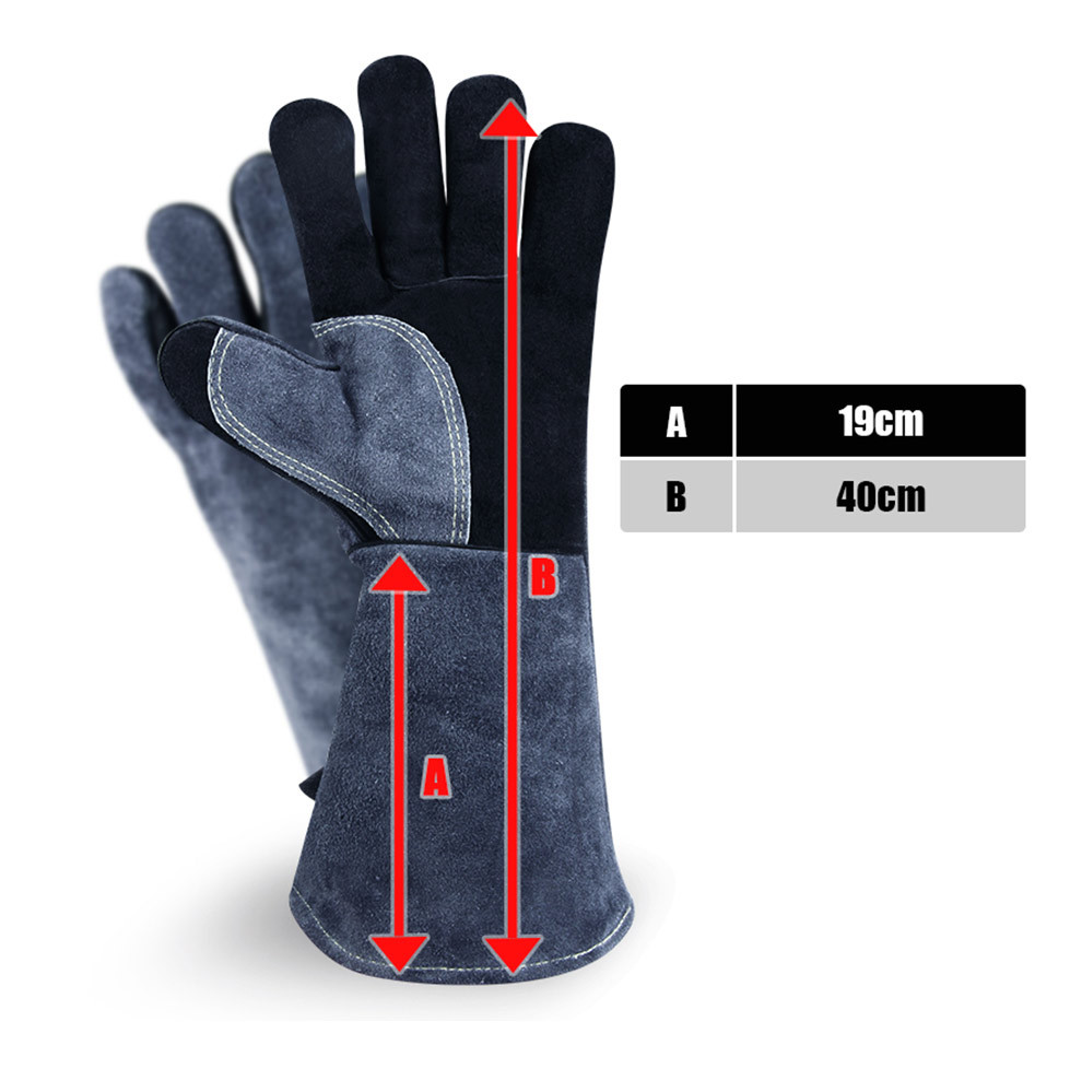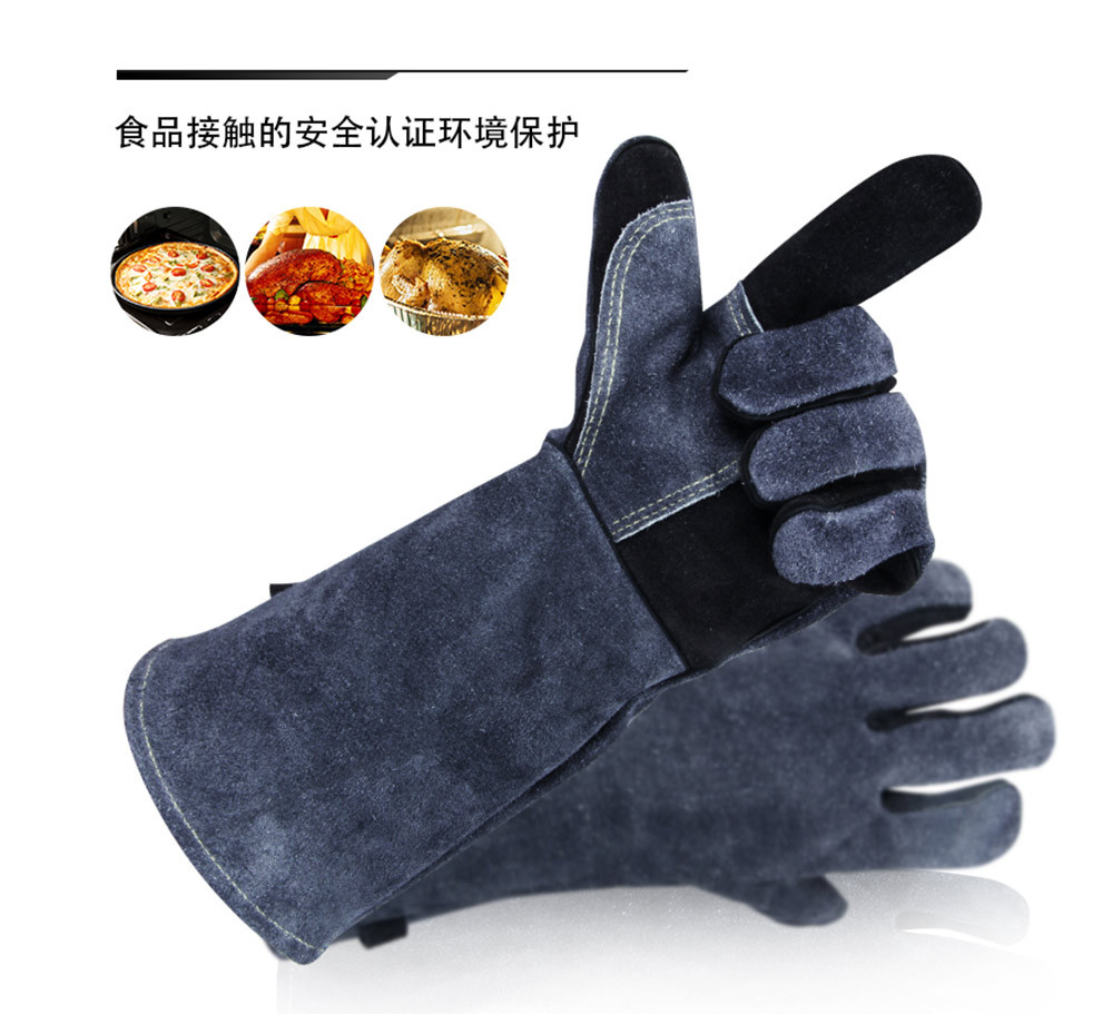 긴형 내열 장갑, 소가죽 알루미늄 필름 단열, 오븐 화상 방지, 캠핑 바베큐 장갑, 노동 보호, 내마모성, 아마존