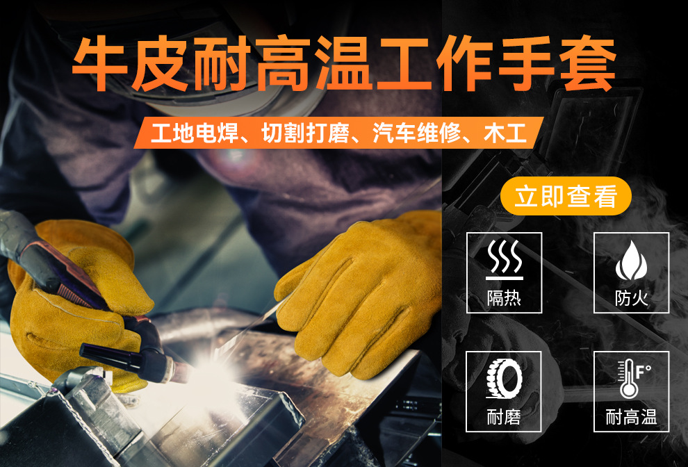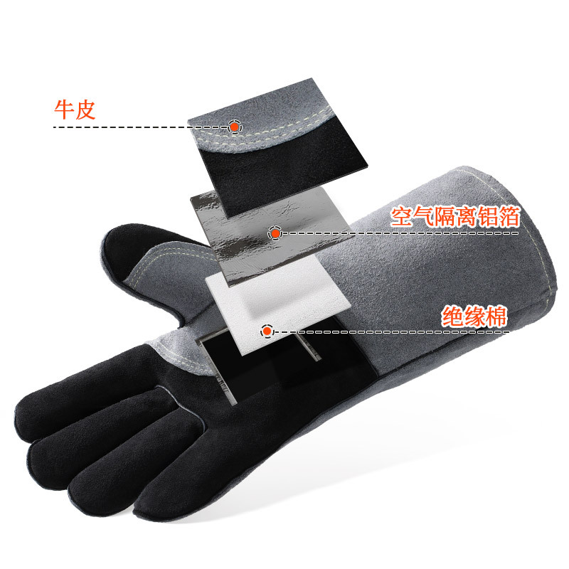 긴형 내열 장갑, 소가죽 알루미늄 필름 단열, 오븐 화상 방지, 캠핑 바베큐 장갑, 노동 보호, 내마모성, 아마존스토어 가기