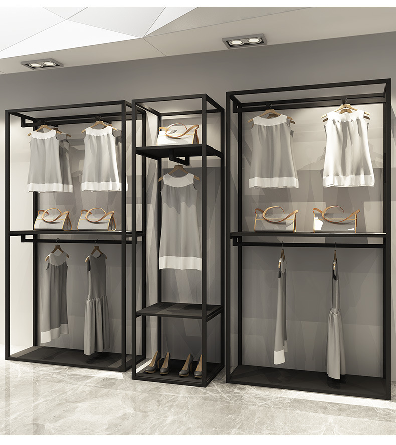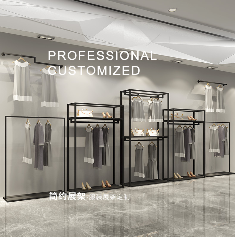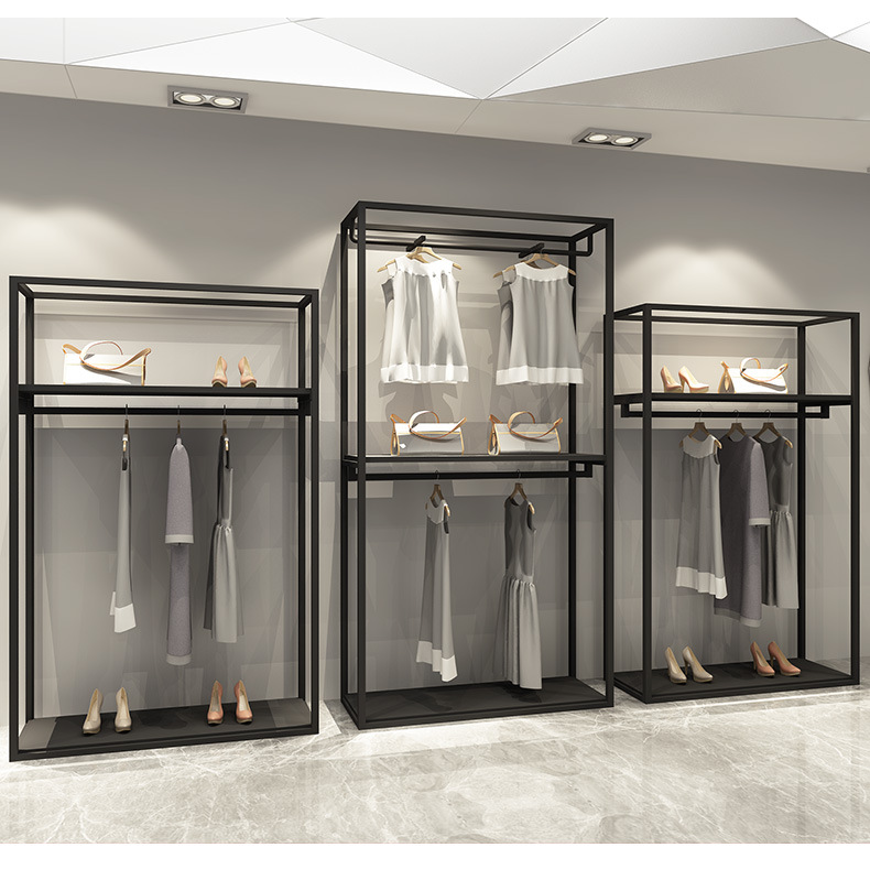 공장 도매 의류 매장 디스플레이 랙 더블 레이어 남성과 여성 의류 매장 선반 두꺼운 철 의류 디스플레이 랙 걸이스토어 가기