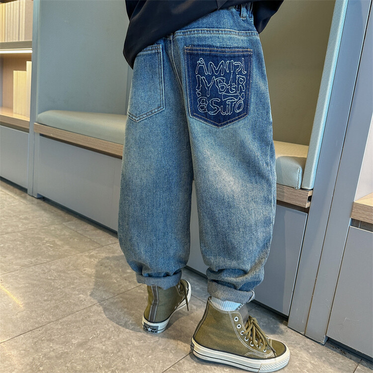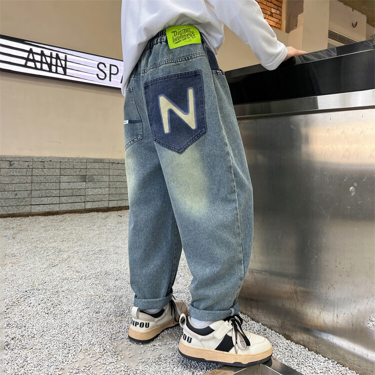 어린이 소년 봄 바지 2025 새 봄 · 가을 중대형 소년 한국 청바지 잘 생긴 바지스토어 가기