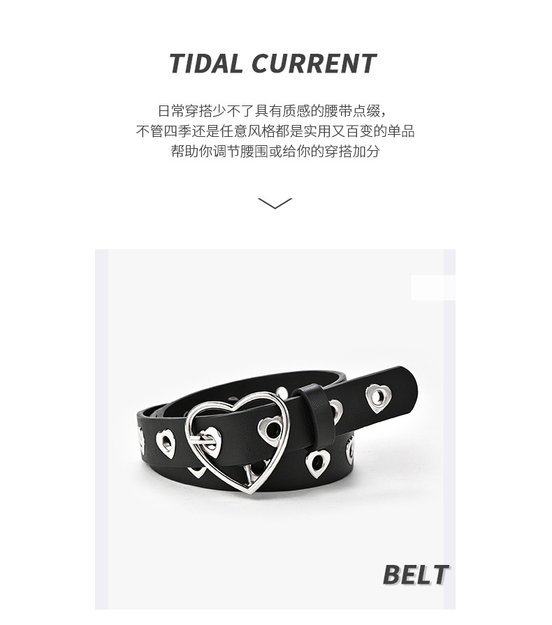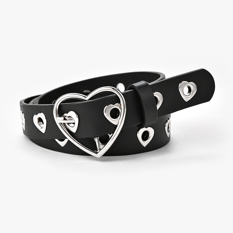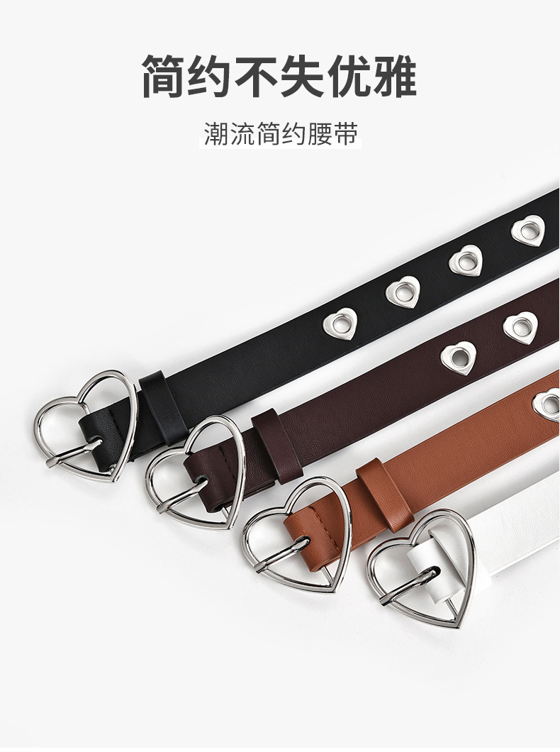 2023 새로운 사랑 버클 장식 숙녀 청바지 벨트 패션 하트 모양의 공기 구멍 중공 벨트 재고 도매스토어 가기