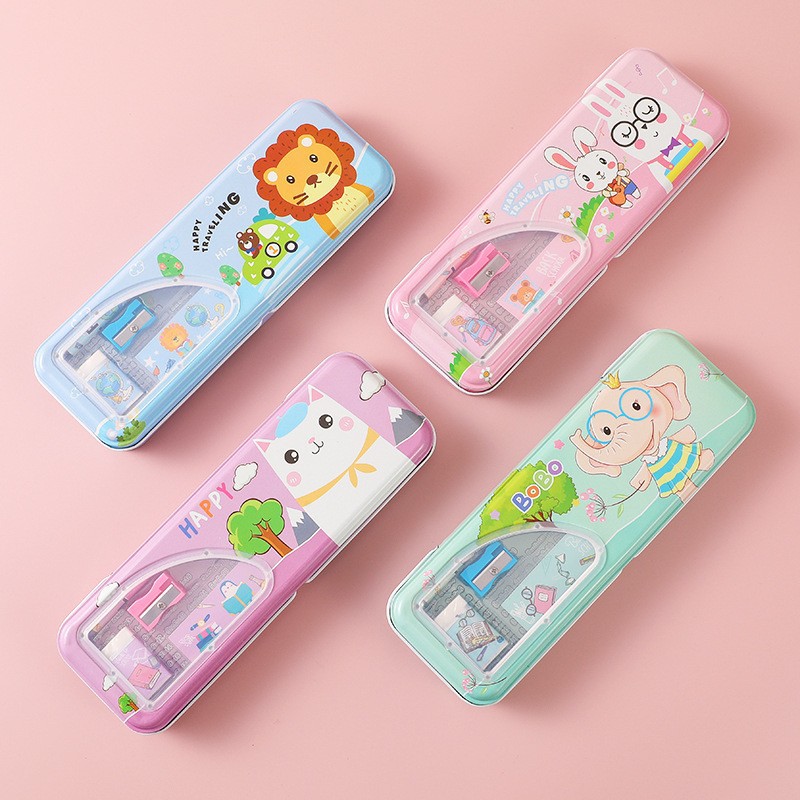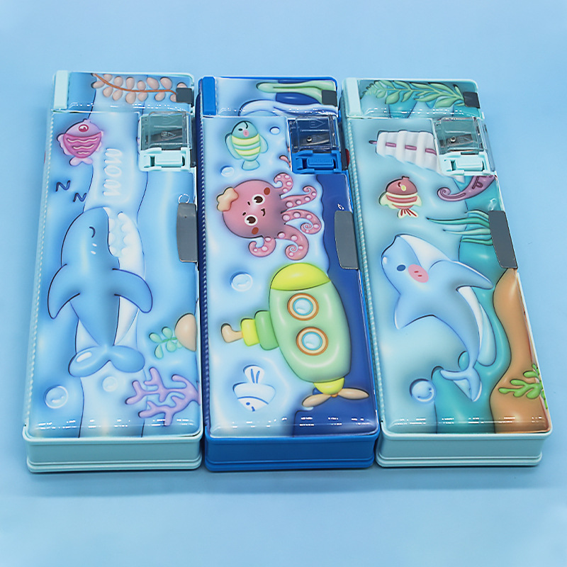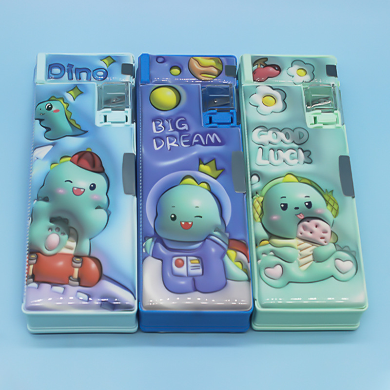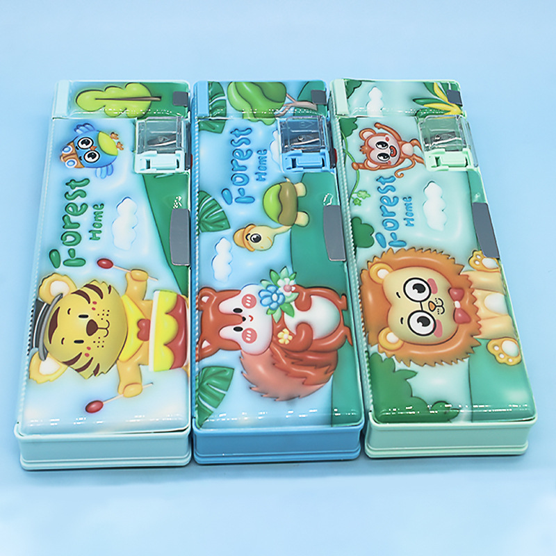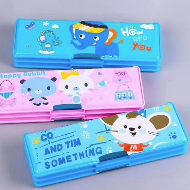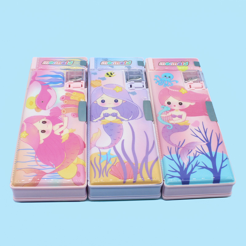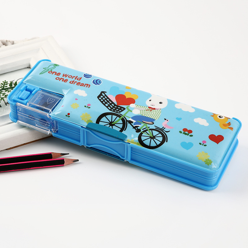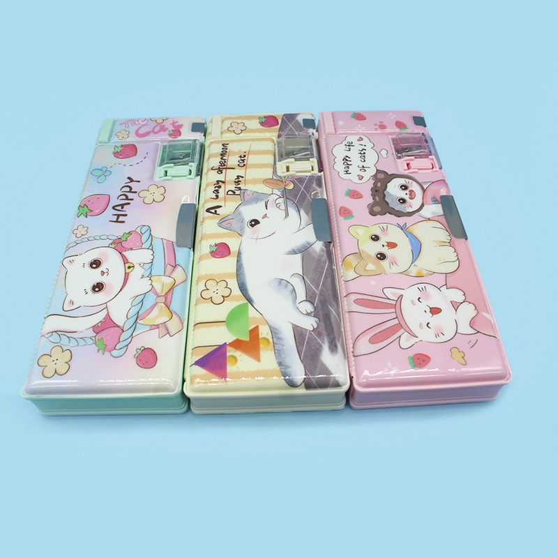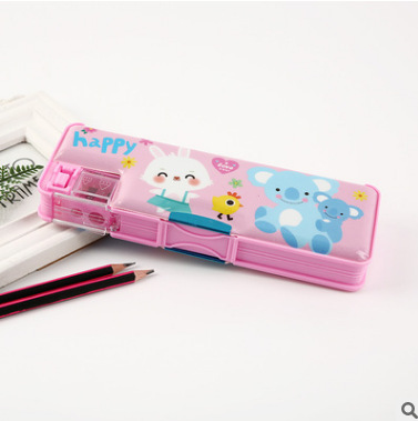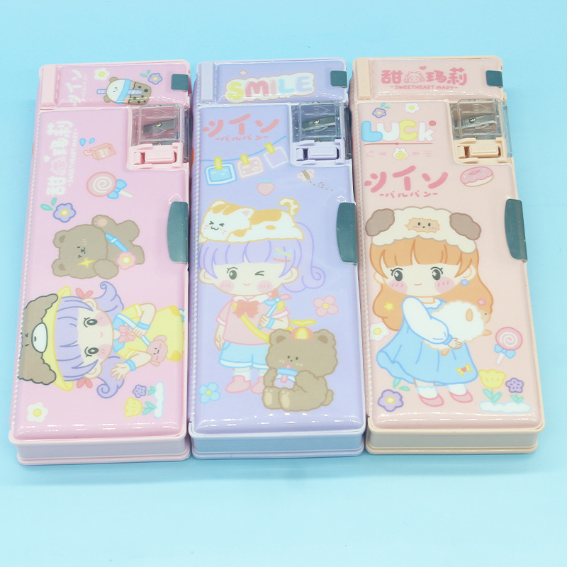 초등학교 학생들을위한 연필 깎이 연필 케이스 더블 오픈 플라스틱 연필 케이스 도매 어린이 연필 케이스 만화 귀여운 바람스토어 가기