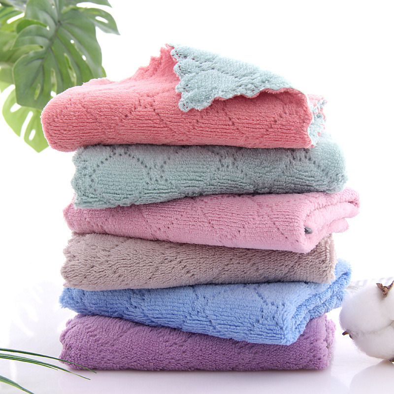 공장 도매 산호 양털 복합 트리밍 접시 타월 천 더블 컬러 흡수 청소 키친타올 스퀘어 타월