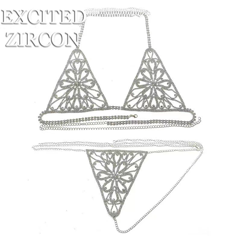 유럽과 미국 패션 모조 다이아몬드 속옷 비키니 바디 체인 패턴 섹시 플래시 다이아몬드 나이트 클럽 의류 바디 체인스토어 가기