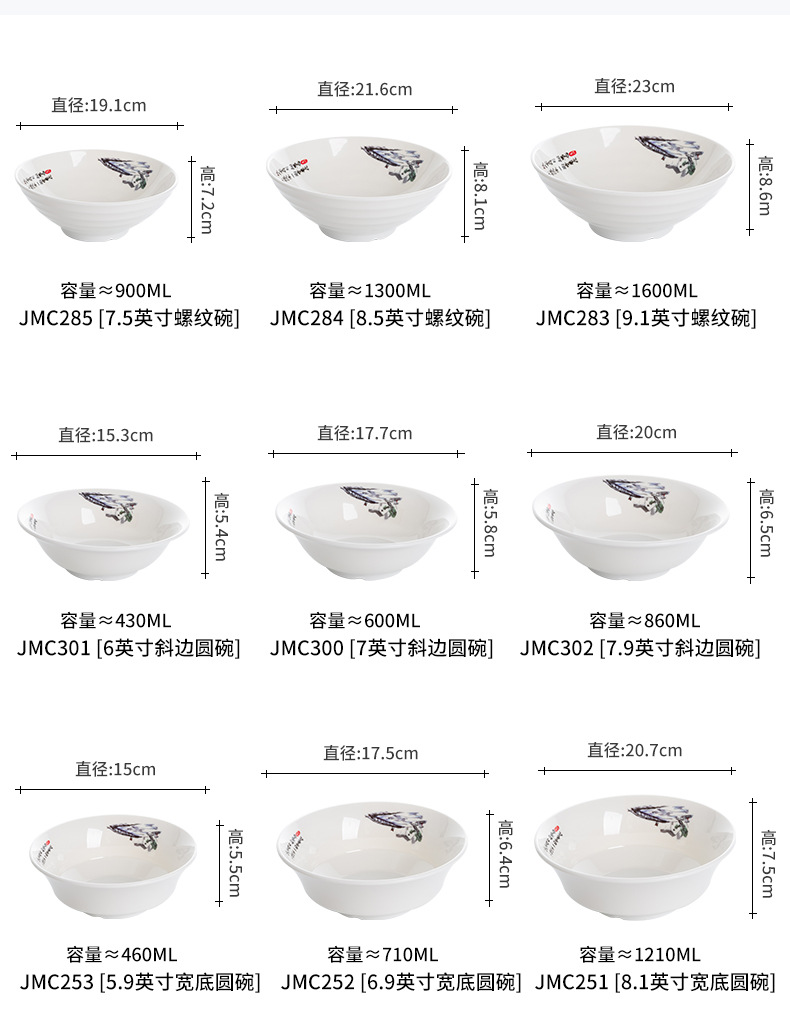 양마라민 국수 그릇 도매 일본 상업용 말라탕 그릇 실 그릇 밥그릇 플라스틱 대형 그릇 수프 그릇 식기