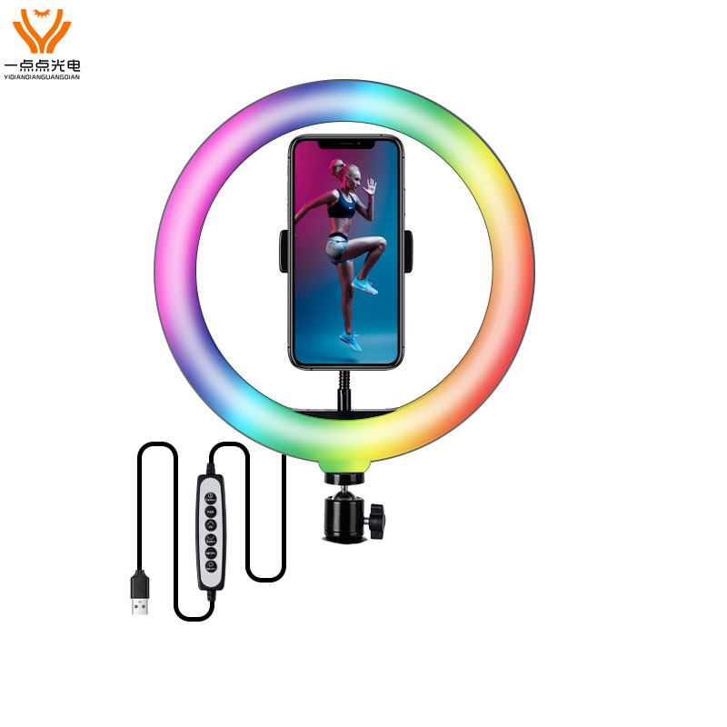 10 인치 필 라이트 RGB 라이브 라이트 데스크탑 스탠드 셀카 링 라이트 LED 7 색 뷰티 필 라이트
