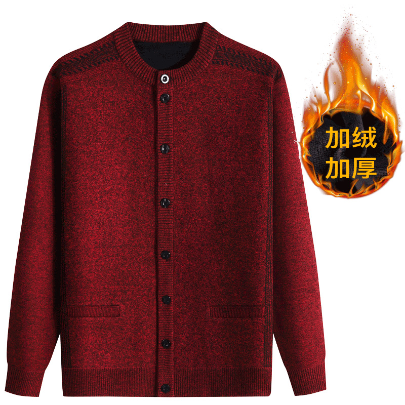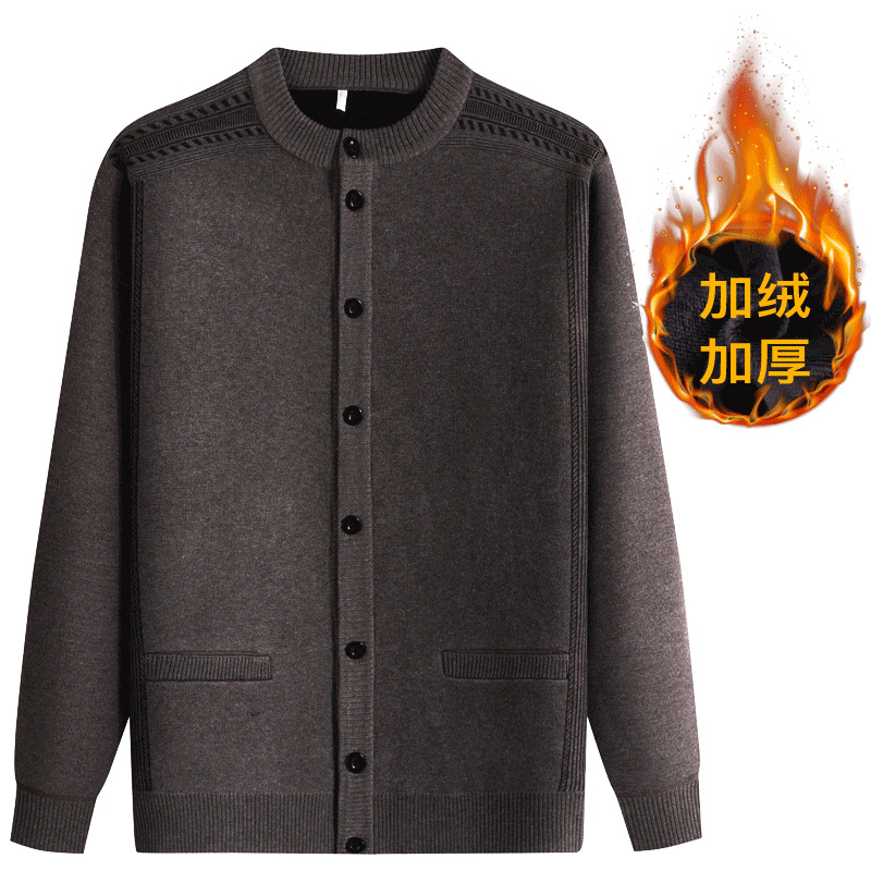 아빠의 가을과 겨울 옷 니트 카디건 남자의 중년 및 노인 긴 소매 느슨한 스웨터 할아버지 기모 두꺼운 따뜻한 재킷