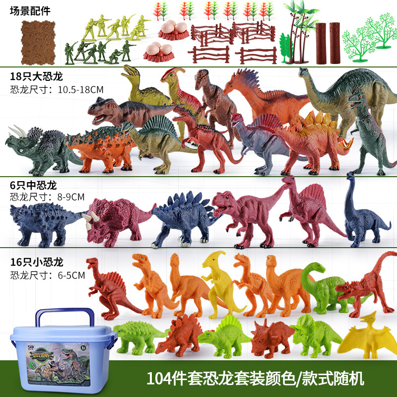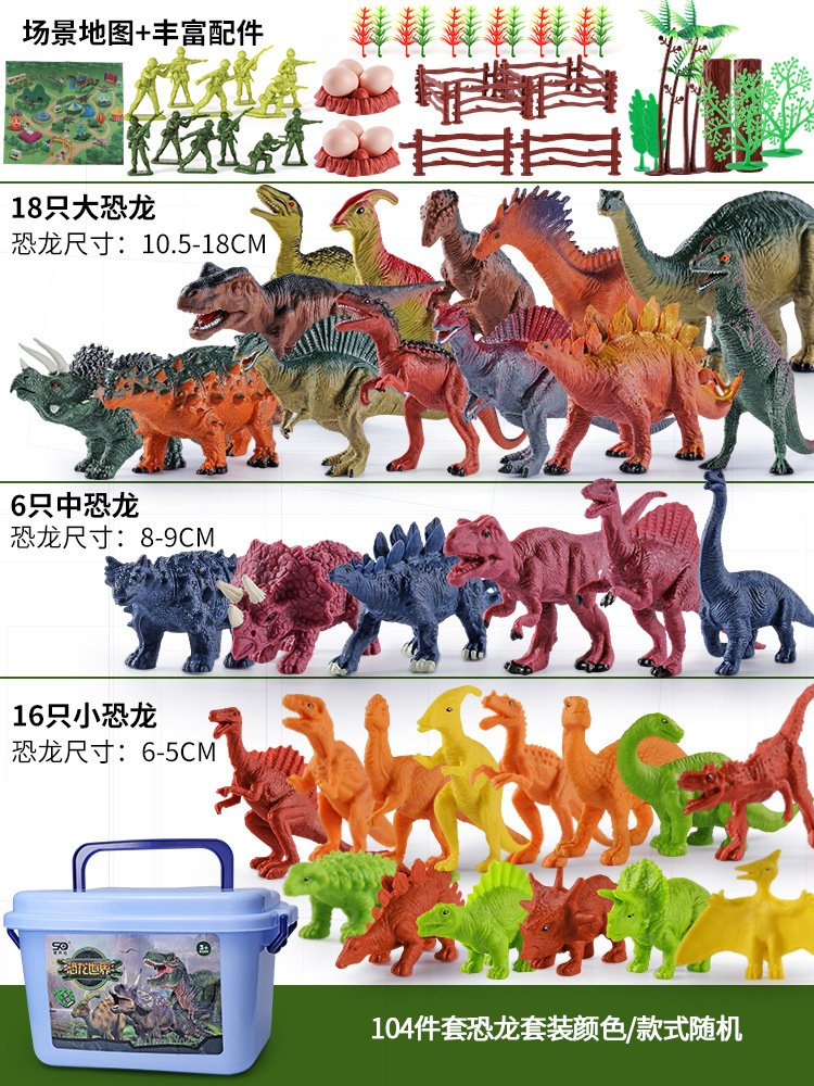 • [디럭스 에디션] 공룡 104 종 세트 (숲 + 군인 장면 + 초대형 지도) 배달 물통