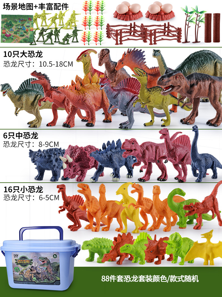 • [디럭스 에디션] 공룡 88 종 세트 (숲 + 군인 장면 + 초대형 지도) 배달 물통