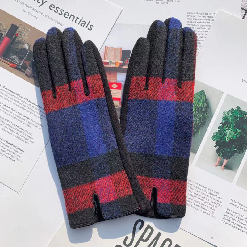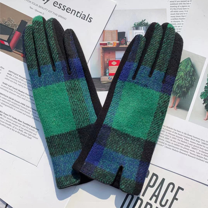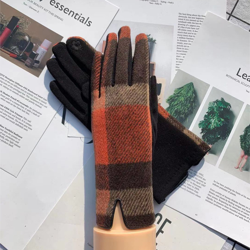 새로운 겨울 일본과 한국식 격자 무늬 벨벳 원단 손바닥 거꾸로 된 벨벳 따뜻한 장갑 매화 꽃 자수 터치 스크린 도매