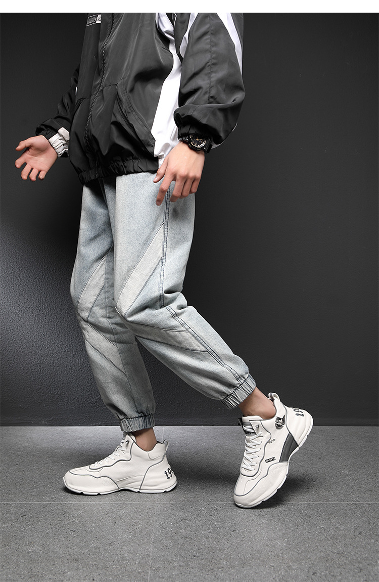 2025년형 웨이저우 고급 남성용 밑창이 튼튼한 캐주얼 스포츠 하이탑 신발 겨울용 솜 안감 두꺼운 밑창 흰색 남성화스토어 가기