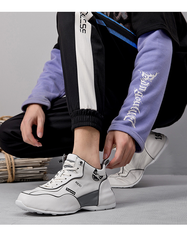 2025년형 웨이저우 고급 남성용 밑창이 튼튼한 캐주얼 스포츠 하이탑 신발 겨울용 솜 안감 두꺼운 밑창 흰색 남성화