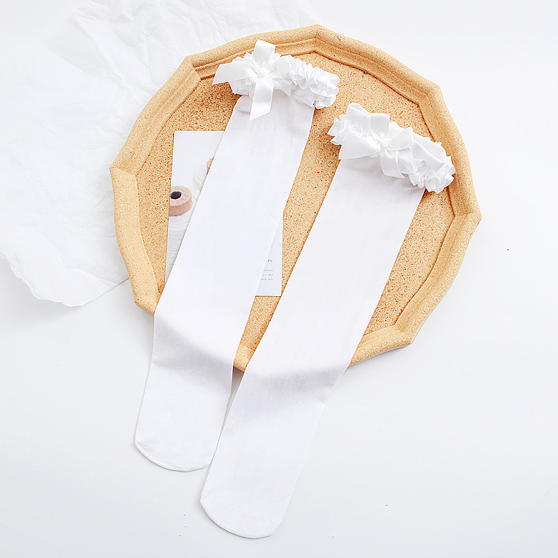 봄과 여름 얇은 일본식 연잎 레이스 중간 길이 양말 여성용 활 무릎 높이 카레 양말 로리타 유니폼 스타킹
