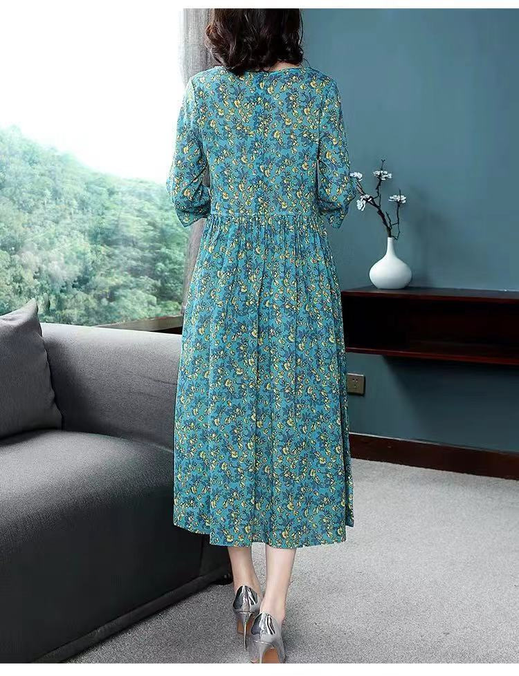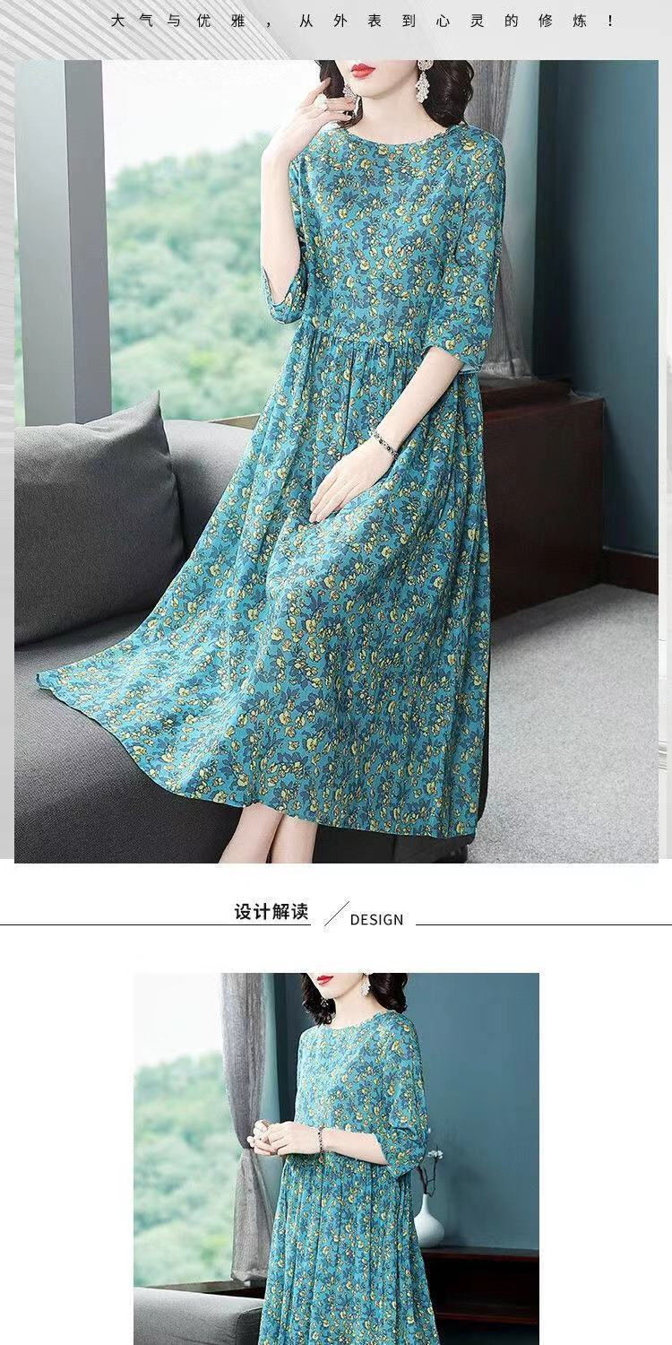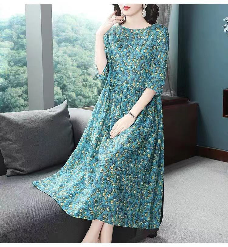 2021 여름 새로운 꽃 플러스 사이즈 여성 의류 풍부한 아내 패션 긴 기질 연령 감소 인쇄 원피스스토어 가기