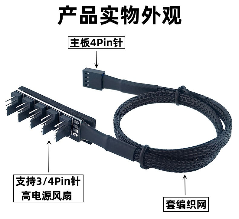 该商品为集线器,功能是将单独的主板四针端口扩展成为多个端口,如果你的风扇是3针风扇,也可以插上去,但无法实现PWM控速度!一定请注意!