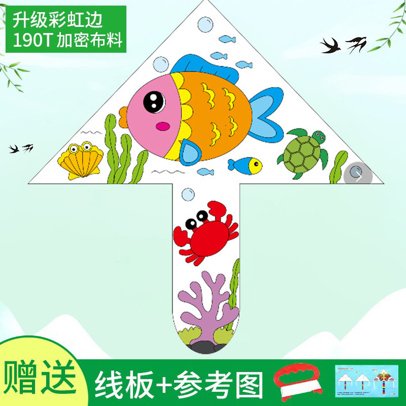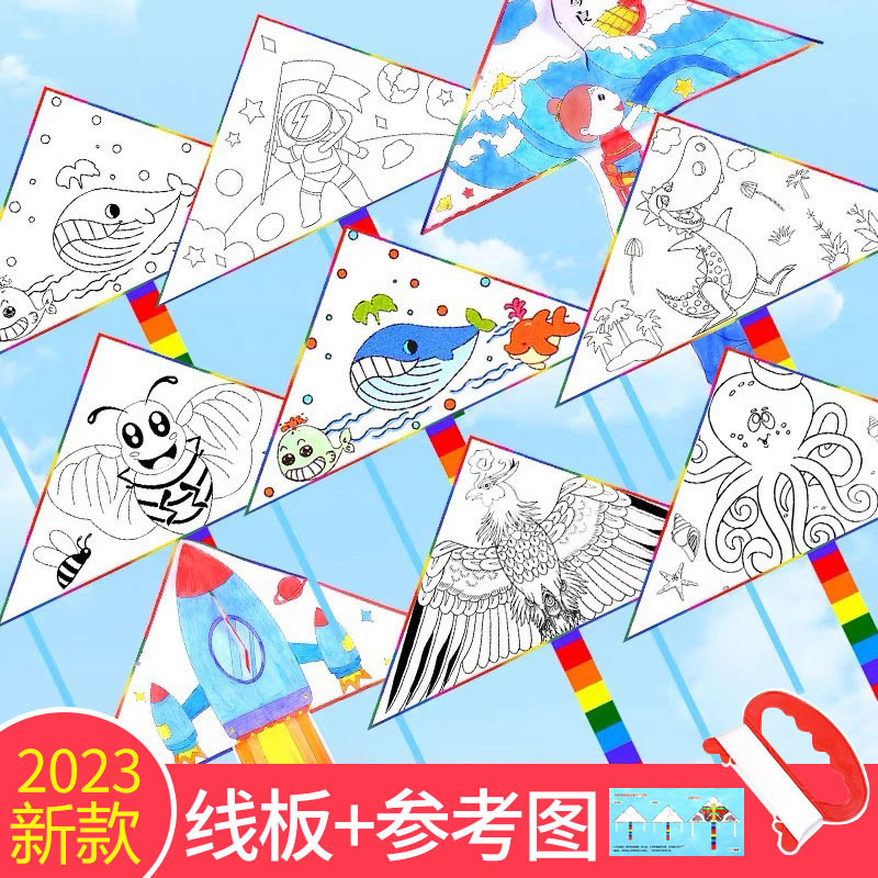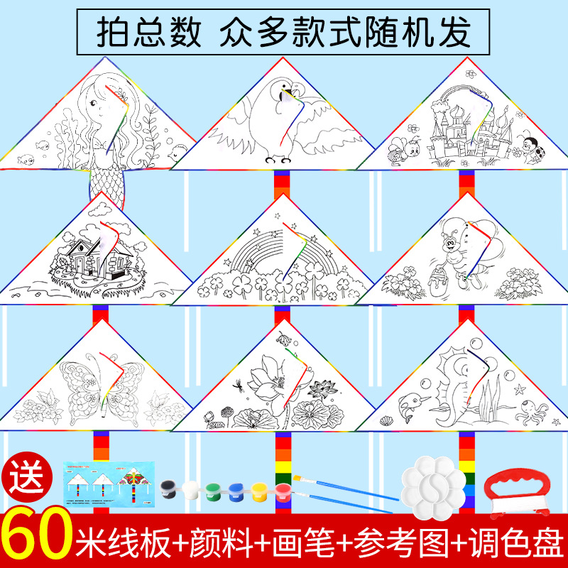 수제 연 DIY 소재 가방 수제 어린이 바람 손으로 그린 빈 낙서 2023 New