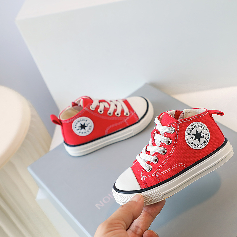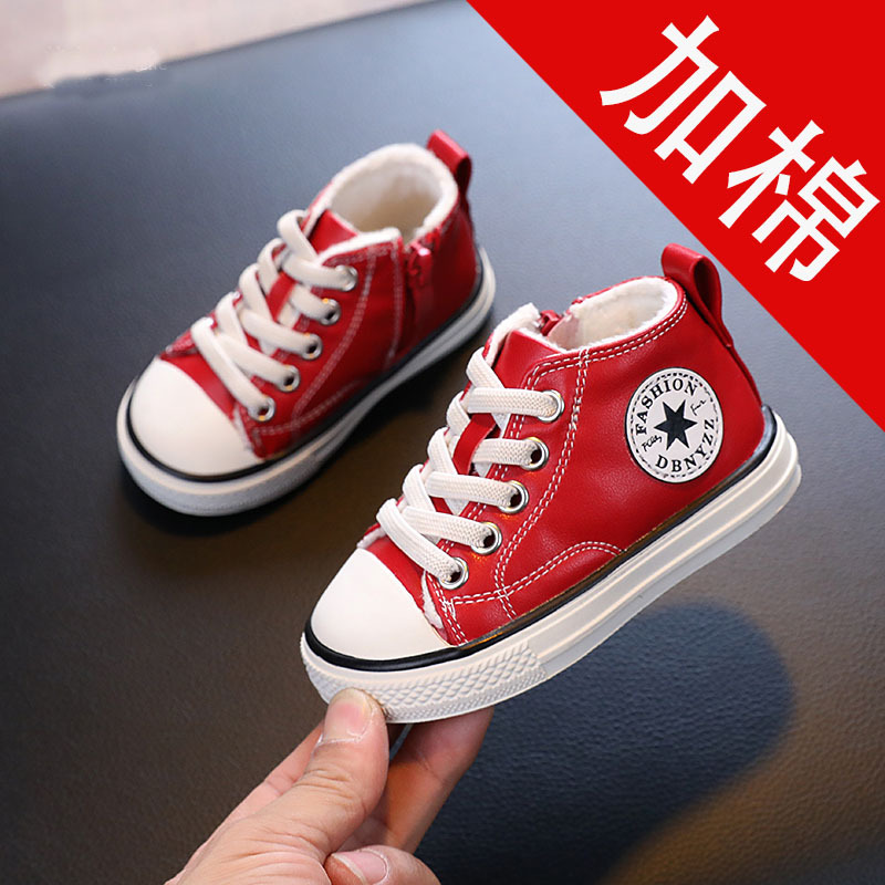 아기 소녀 캔버스 신발 봄과 가을 새 남아 보드 신발 하이탑 여아 유아 신발 어린이 부드러운 밑창 유아 신발