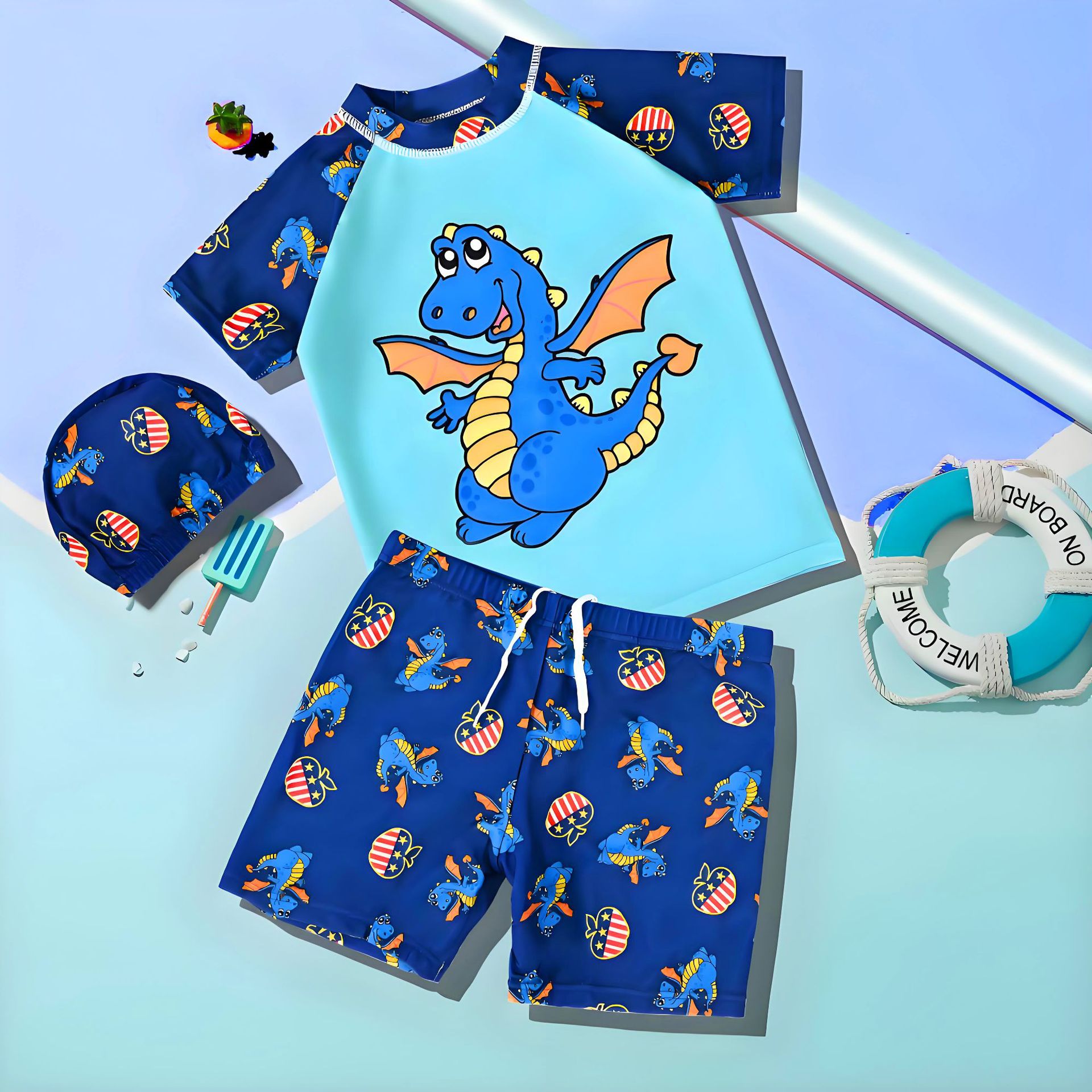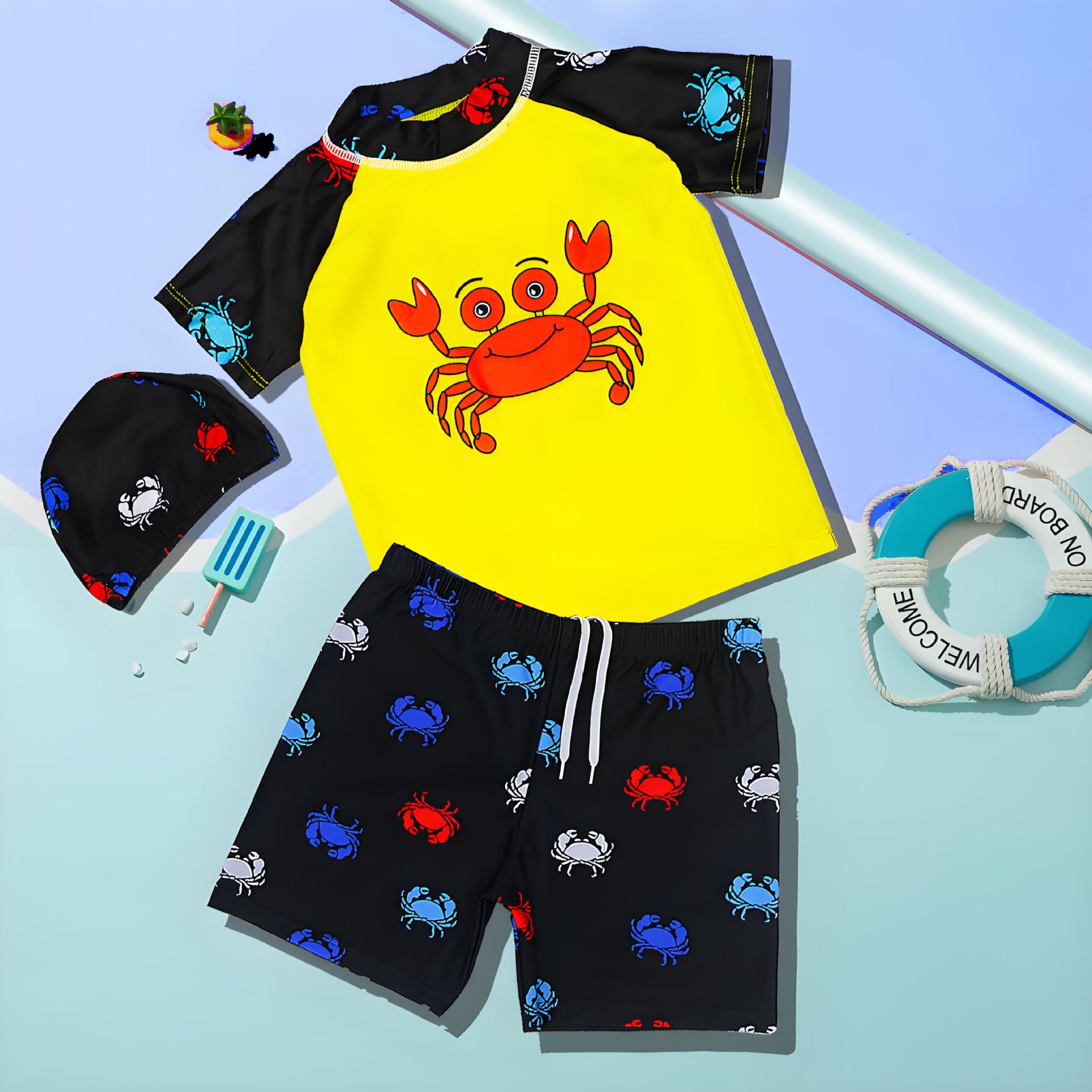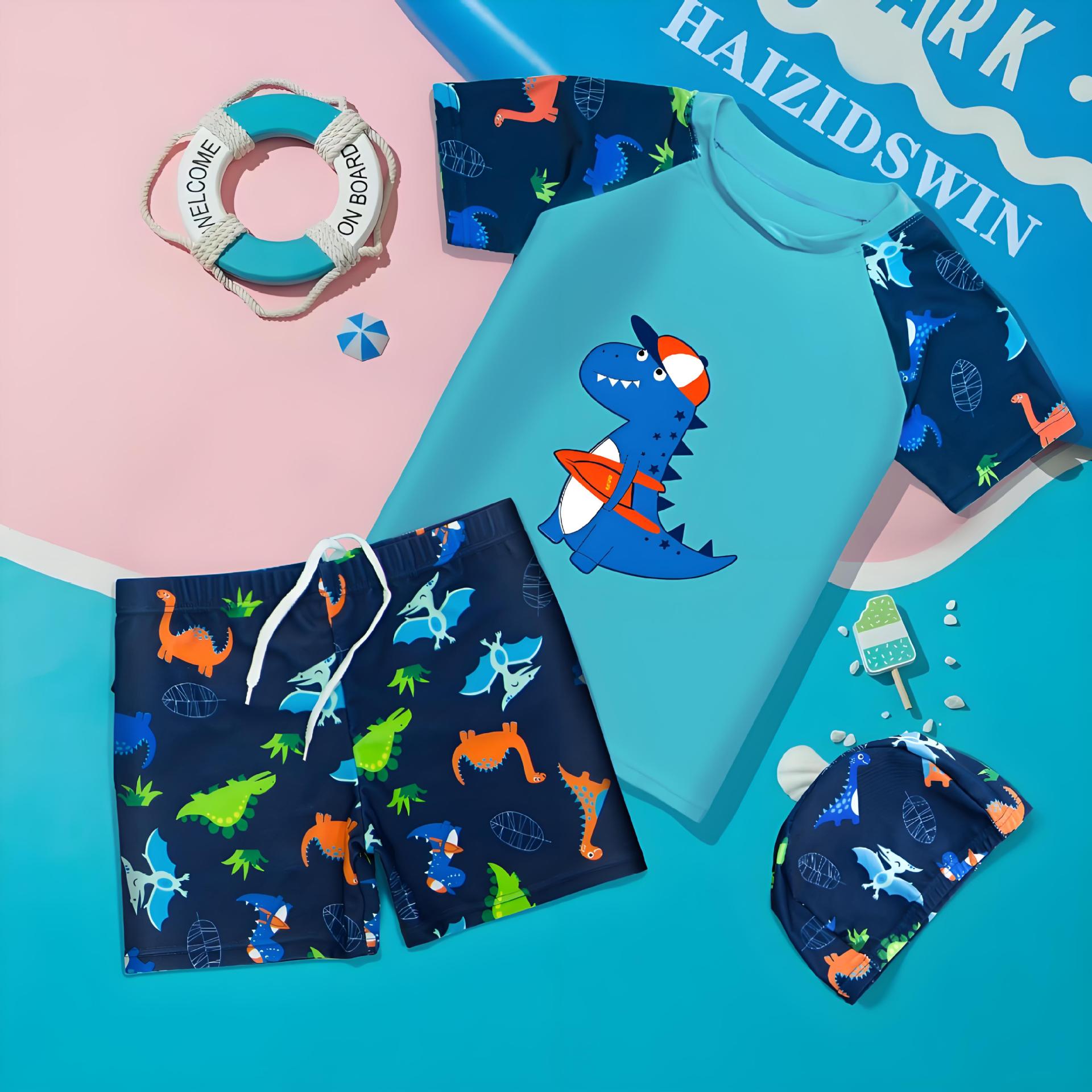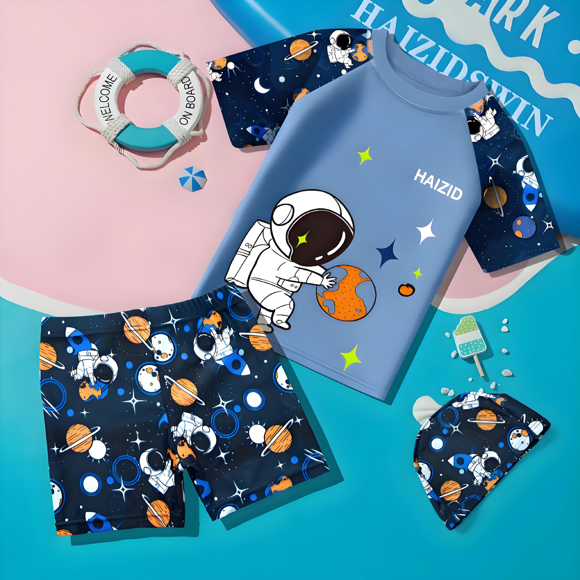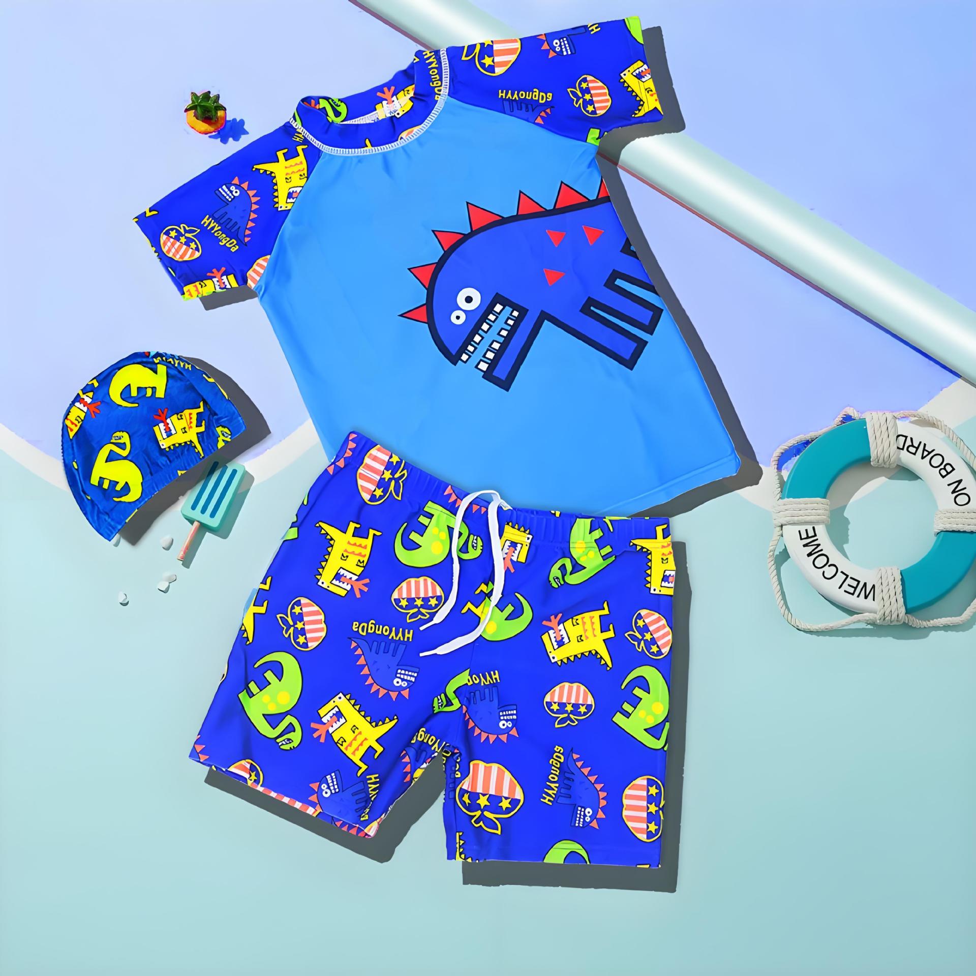 어린이 수영복 2025년형 분리형 세트 소형 중형 대형 아동 만화 수영복 스포츠 속건 남아 수영 팬츠 도매