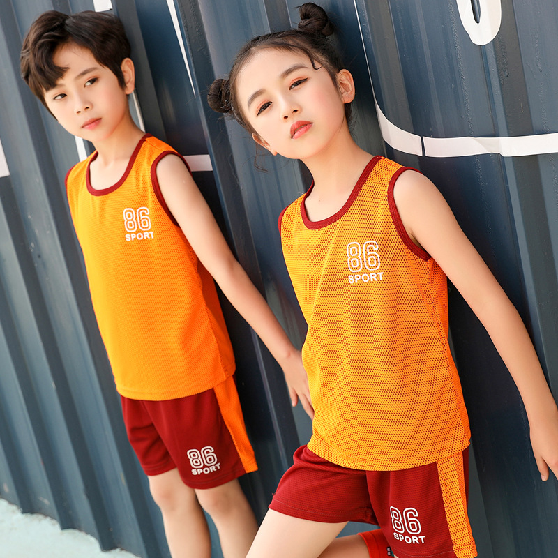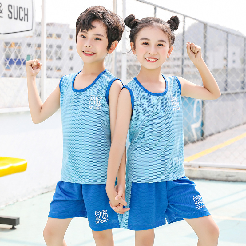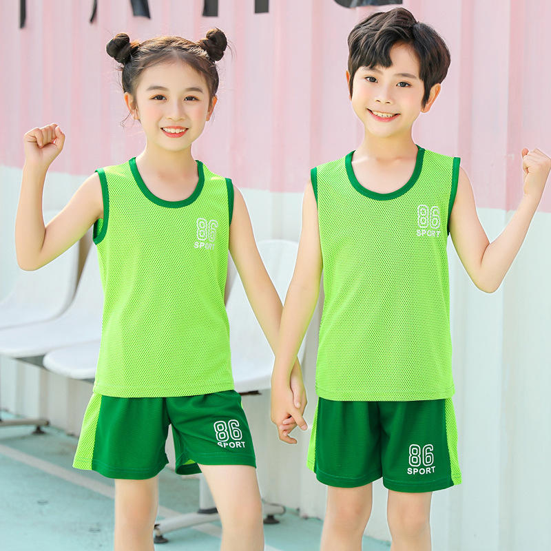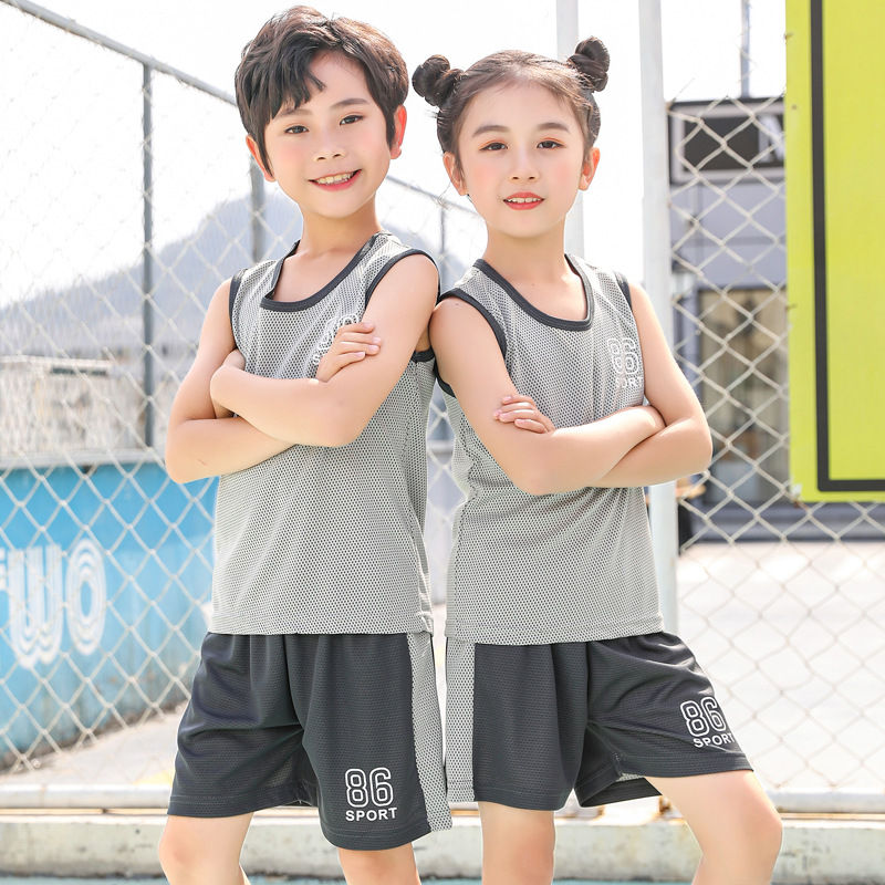 얇은 중소형 풀오버 세트 어린이 조끼 어린이 소년 및 어린이 야외 스포츠 달리기 민소매 반바지 2 종 세트