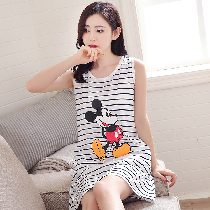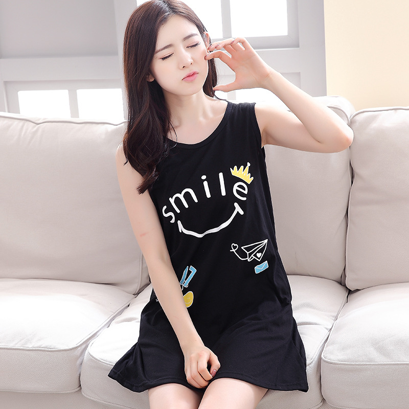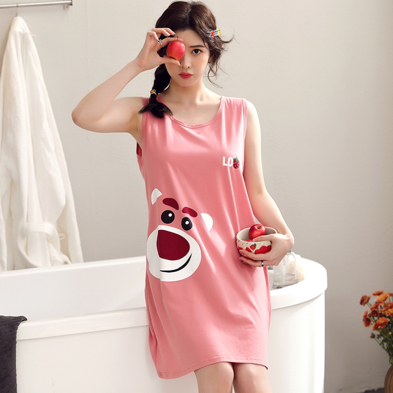 여름 슬링 잠옷 여자의 잠옷 민소매 조끼 섹시한 임산부 귀여운 통통녀 느슨한 초대형 여름 얇은스토어 가기