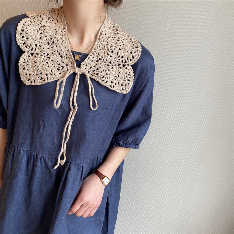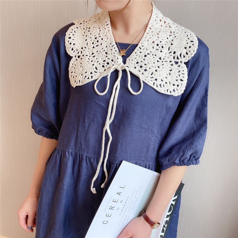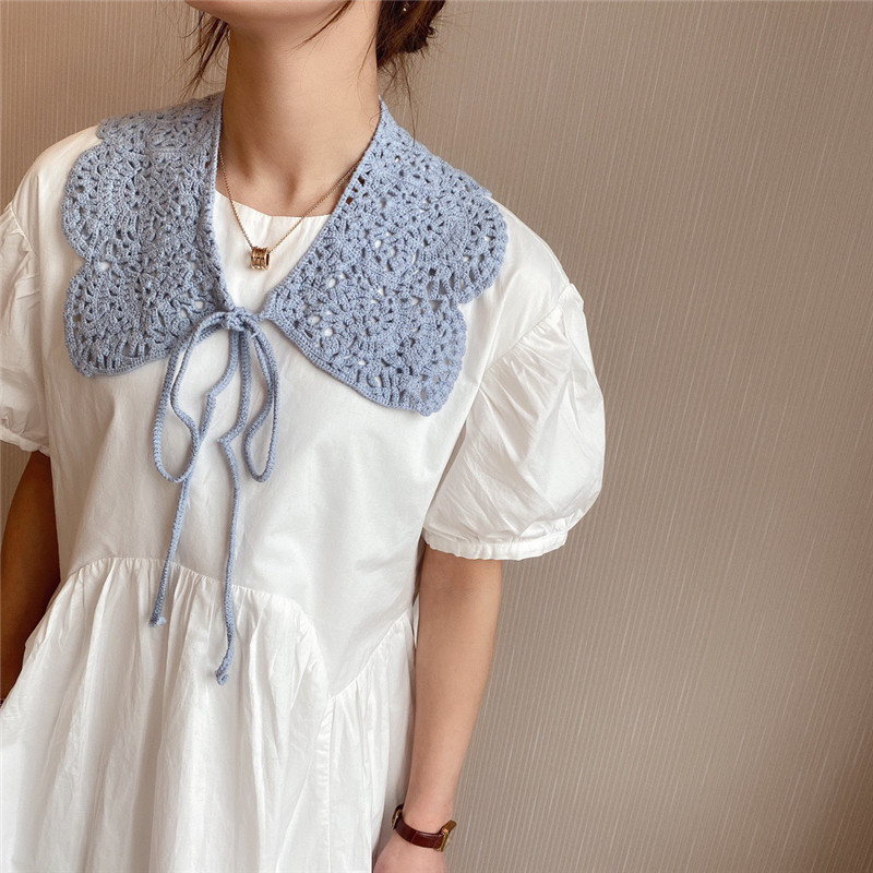 일본식 페어리 스타일 목가적 인 학생 레이스 숄 여성용 작은 조끼 스커트 무스 중공 스카프 한국식 매듭 가짜 칼라스토어 가기
