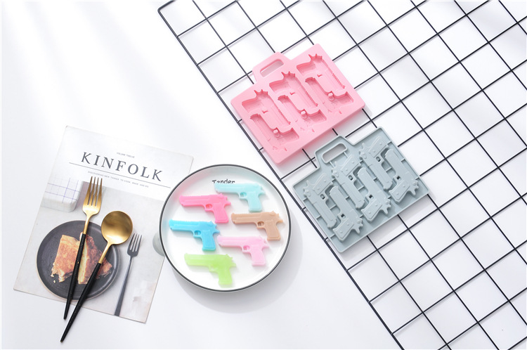 재고 6 심지어 권총 모양의 실리콘 아이스크림 실리콘 크리 에이 티브 아이스크림 아이스크림 몰드 보완 초콜릿 캔디 몰드
